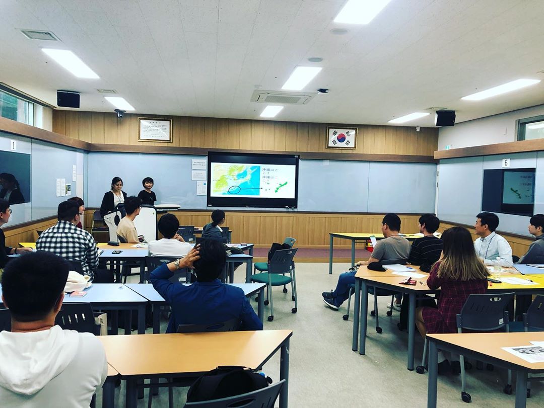 交流会では、韓国語や英語、日本語などをお互いに交えながら、自国や地域の文化を紹介し合い、ディスカッションとプレゼンテーションで盛り上がりました。