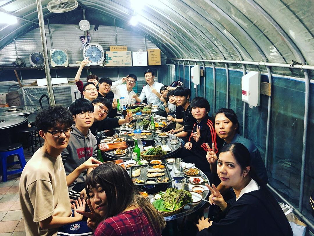 同じ焼き肉でも日本とは食材が違ったり、食べ方が違ったり、何といっても値段が安かったりして、食文化の勉強にもなった交流会でした。それはさておき、サムギョプサルが美味しかったです!!