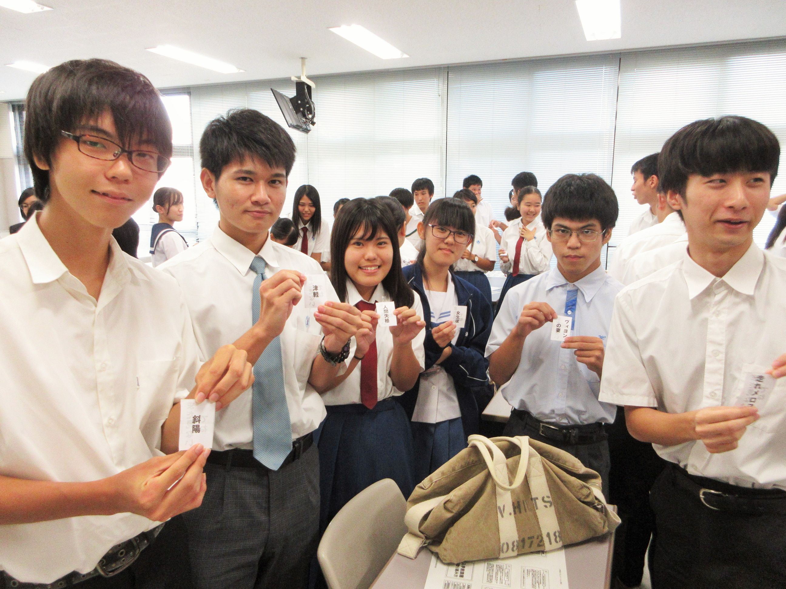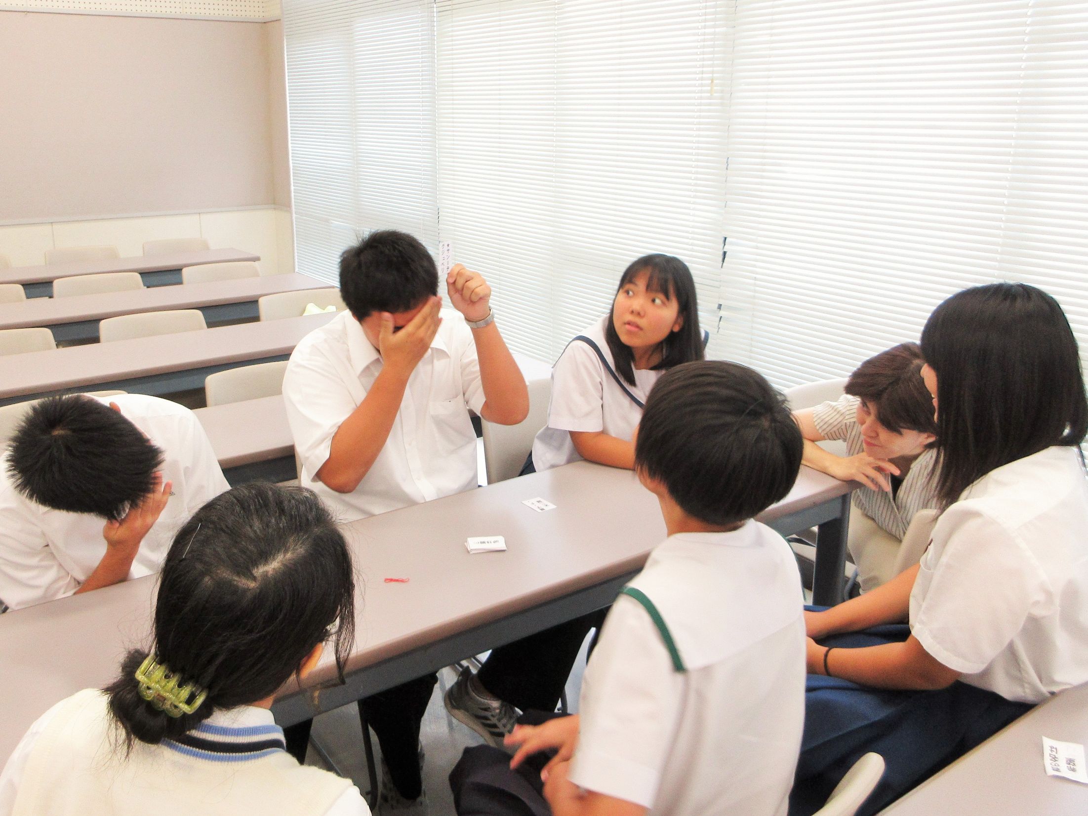 後半は、入学後一緒に学んでいく仲間と少し触れあってみよう、ということで、学科の先生たちともいっしょに、山口先生が考案したオリジナルゲーム、①作者あてゲーム、②私は誰でしょうカードゲームを行いました。