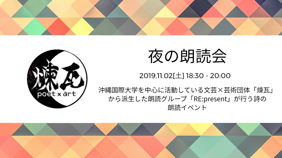 このたび、沖縄国際大学日本文化学科を中心に活動している文芸×芸術団体「煉瓦」から派生した朗読グループ「RE:present」のみなさんが詩の朗読イベントを開催することになりました。