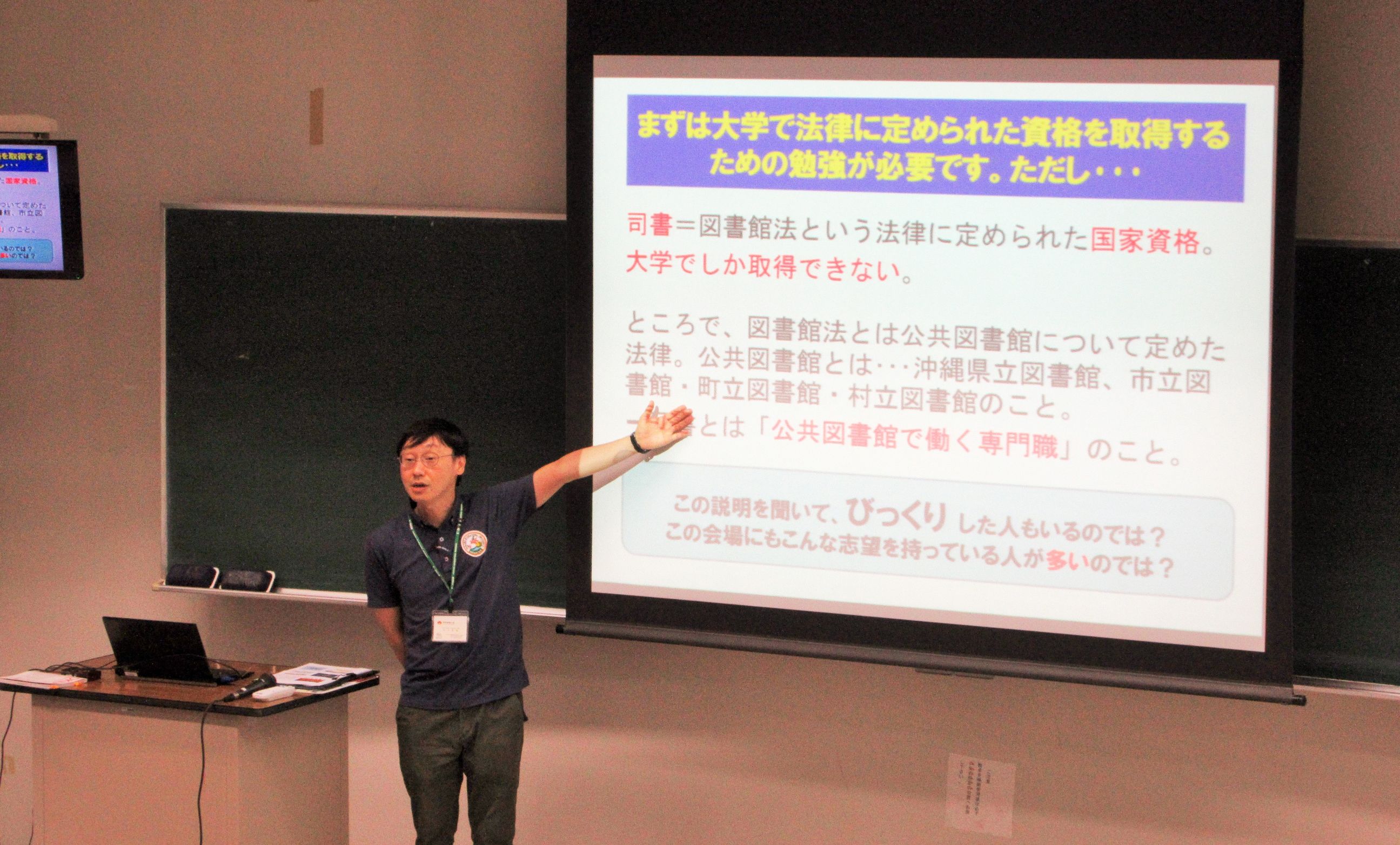 10月13日に開催された第3回オープンキャンパス。午後の体験講座は、日本文化学科で図書館司書課程を担当している山口真也先生による「沖縄で図書館司書になるには?ー大学・学科選びはどうすればいい?」と題した講座が開催されました。