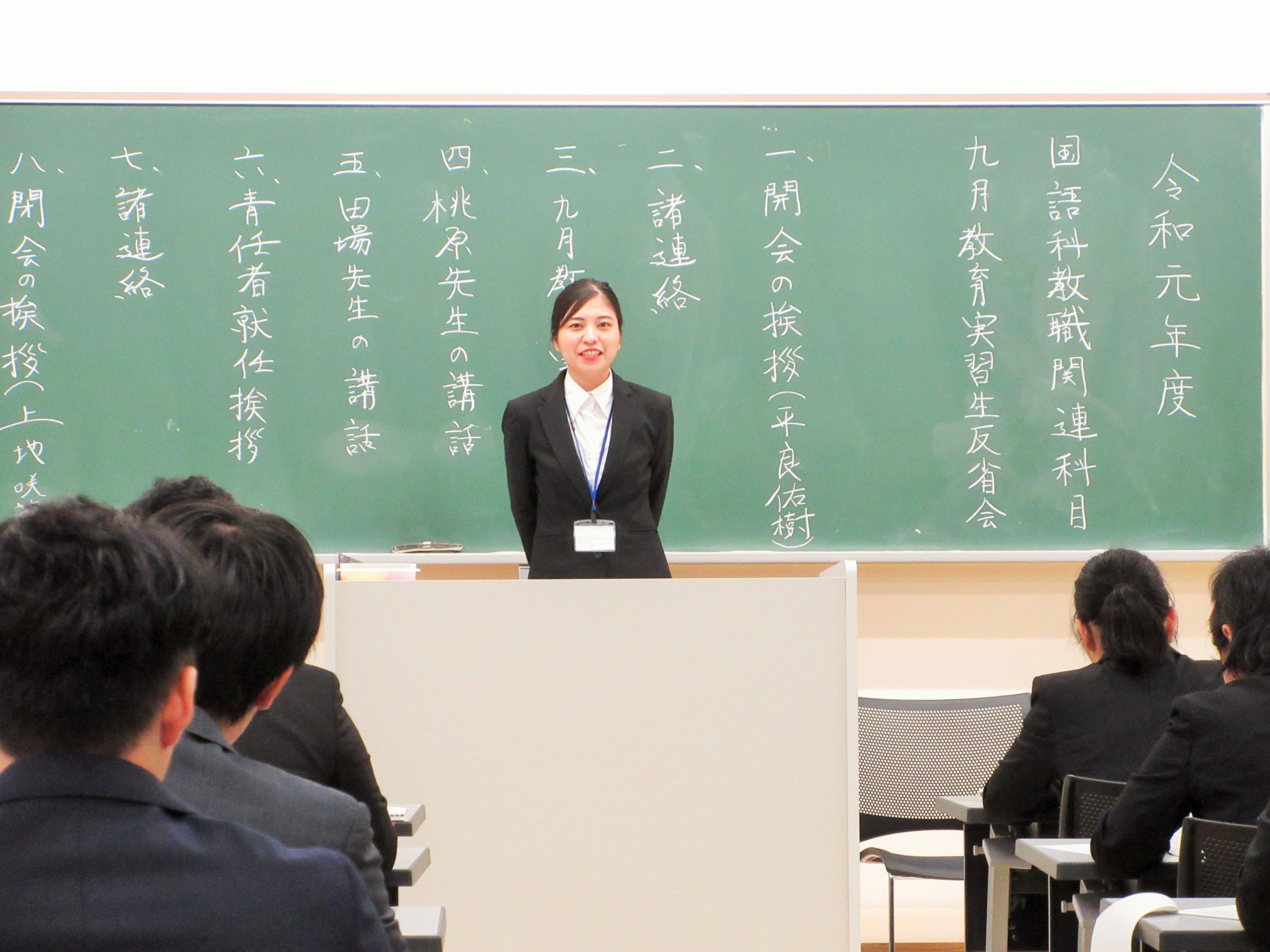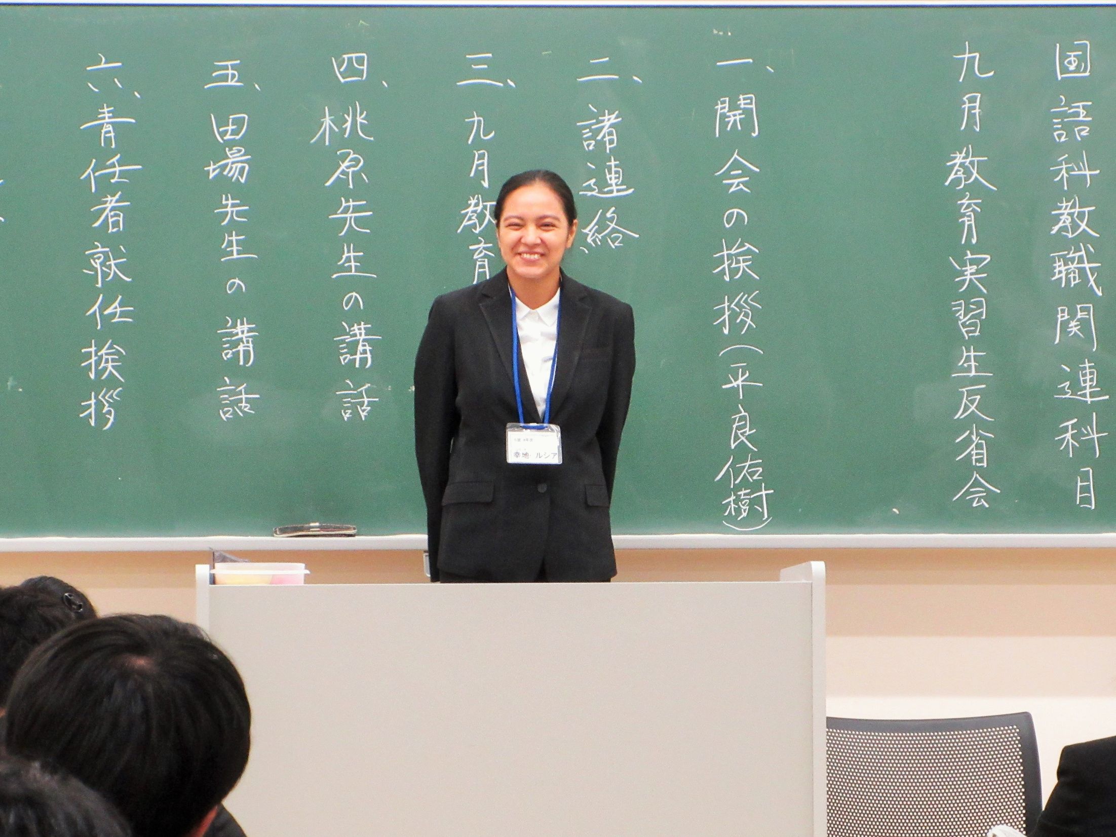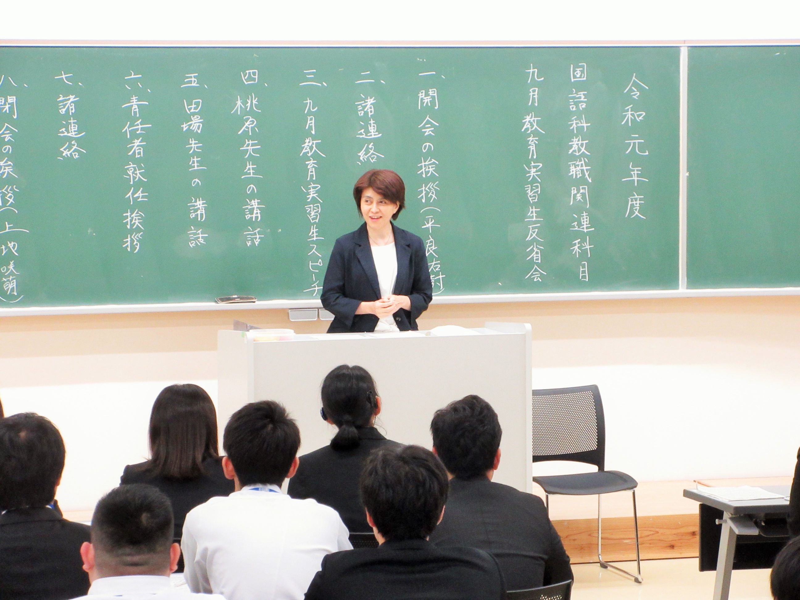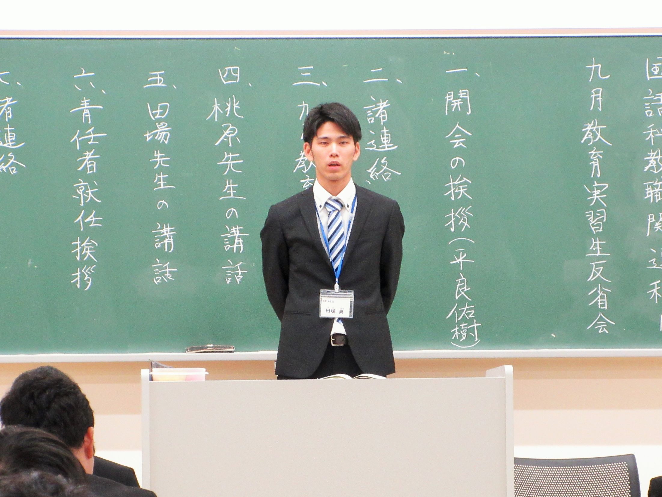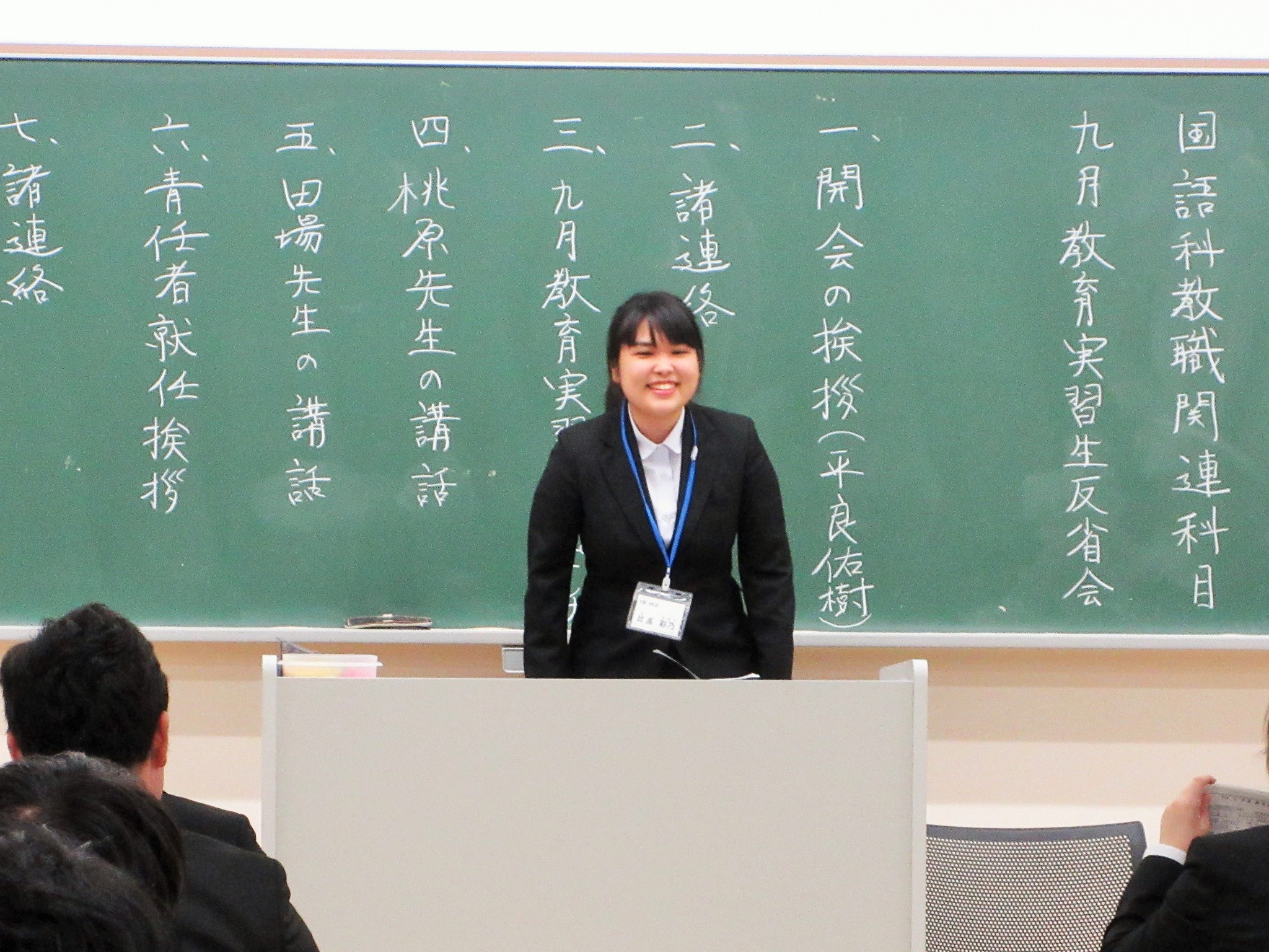 「いま教職課程の授業で取り組んでいること1つ1つに意味挙がったことが、実習に行って初めてわかった。これから教育実習に行くみなさんも1つ1つ丁寧に授業に取り組んでほしい」