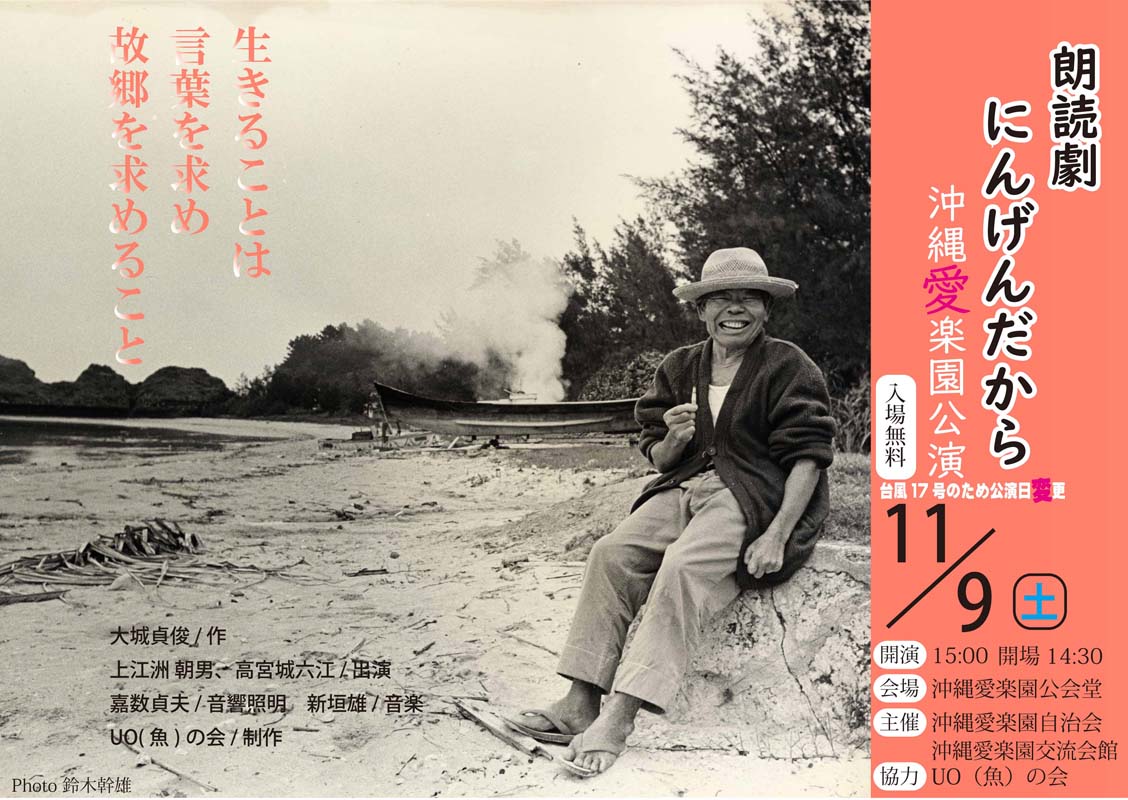 少し前ですが、10月5日に佐喜眞美術館にて上演された朗読劇「にんげんだから」。朗読劇の中の群読では日本文化学科の学生たちも参加しました。上演の様子が佐喜眞美術館のFacebookで紹介されていましたので、こちらでもご紹介します。(田場裕規先生もスタッフとして上演のお手伝いをされています)