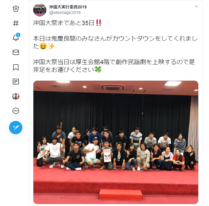 大学祭本番に向けてのリハーサルにお邪魔した様子が、沖縄国際大学大学祭実行委員のツイッターで紹介されていましたので、こちらでもご紹介します。
