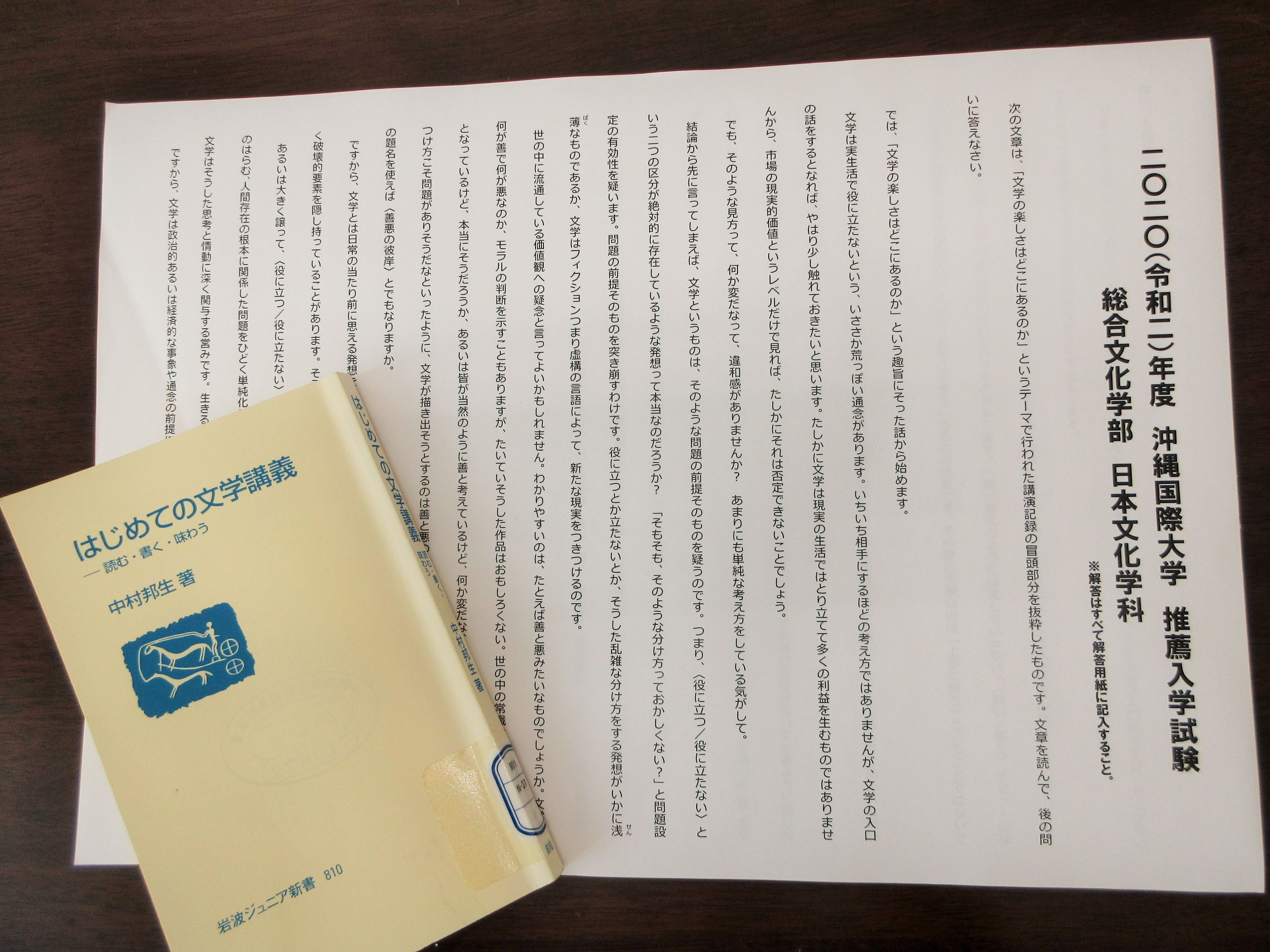 一般推薦の小論文試験のテーマは「文学は役に立つのか?」「文学の楽しさとはどういうことか?」。