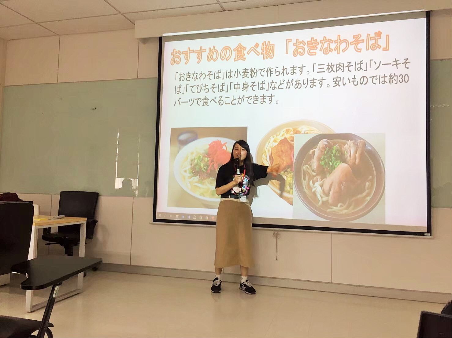 実習の教具はパワーポイントで、90分の授業を2回行いました。沖国での模擬授業・教壇実習は、イラストや文字カードなど全て印刷・手書きで行っていたため、授業スタイルは大きく異なっていました。しかし、パワーポイントは授業の流れを全てスライドに入れることができるため、落ち着いて実習に臨むことができました。正直なところ、沖国での実習は学生一人一人に気を配る余裕も、授業を楽しむ余裕もなく、反省点ばかりでした。教壇実習も一回しかないため、反省を活かすチャンスもなく、とても心残りがありました。そのため、タイ実習も不安はありましたが、前回できなかったことを少しでもできるように心掛けました。実際授業を行ってみると、タイの学生はみんな素直で一生懸命で、とても意欲的に授業に参加してくれました。そのおかげで私もとても楽しく、リラックスした状態で授業ができ、学生に気を配りつつ進めることができました。