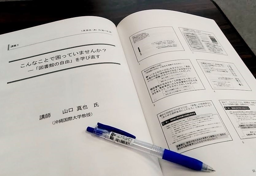 山口先生が担当したのは3日目の午後2本目の講座で、テーマは「こんなことで困っていませんか? 図書館の自由を学びなおす」ということで、「図書館の自由に関する宣言」を題材として、図書館で知る自由を保障するとはどのような意味があるのか、その範囲が国民主権を支える政治的な情報だけでなく、あらゆる基本的人権の構成要素として情報へのフリーアクセス権にまで及んでいることを、クイズ形式で楽しく学びました。