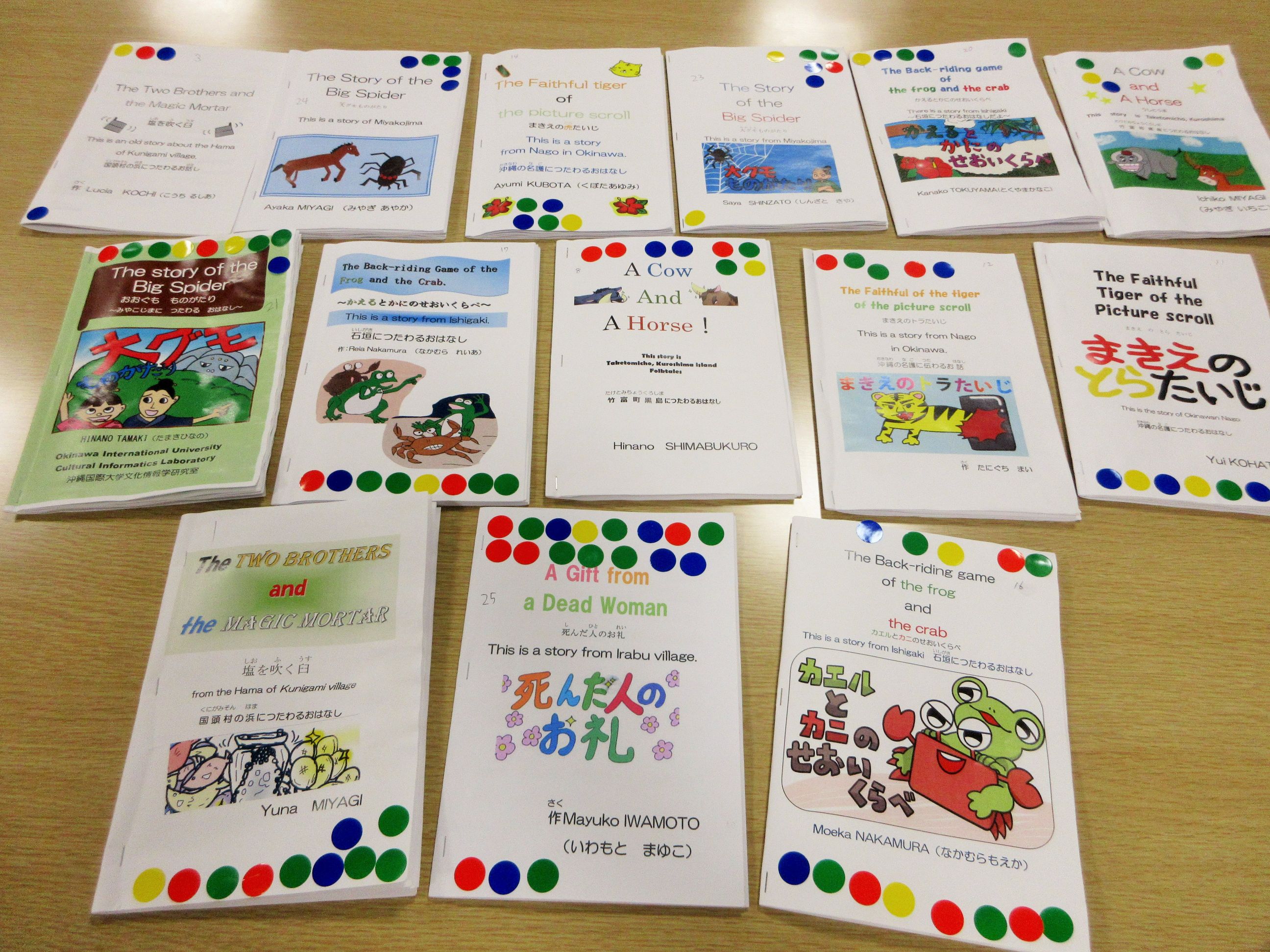 沖縄の文化を言語力やICTを活用して広く発信していく「多文化間コミュニケーションコース」の取り組みの1つとして、JICA沖縄・図書資料室のスタッフの皆さんのご協力の下で取り組んできた、沖縄昔話の英語絵本コンテスト。