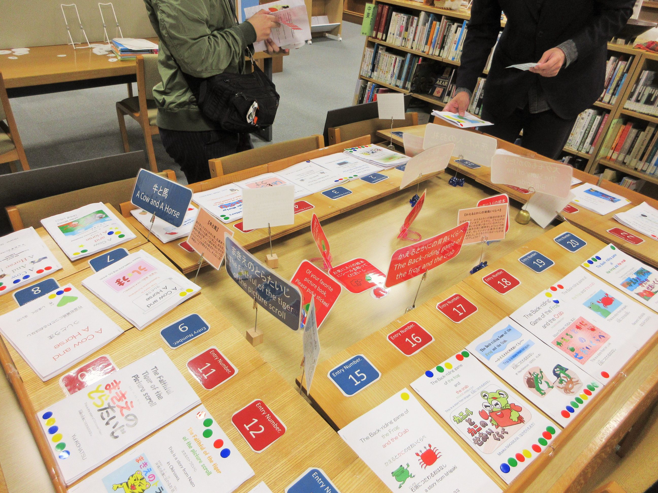 今回、展示用していた絵本はホッチキス止めの簡易製本版でしたので、これらの入賞作は、表紙を付けて製本して、後日、図書資料に寄贈する予定です。