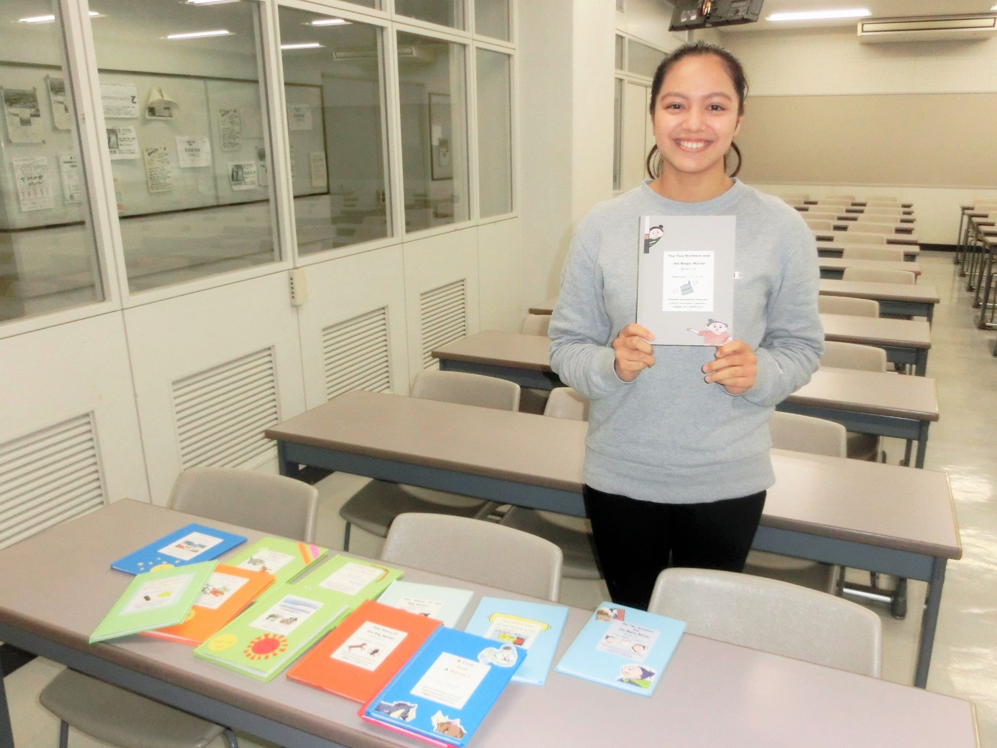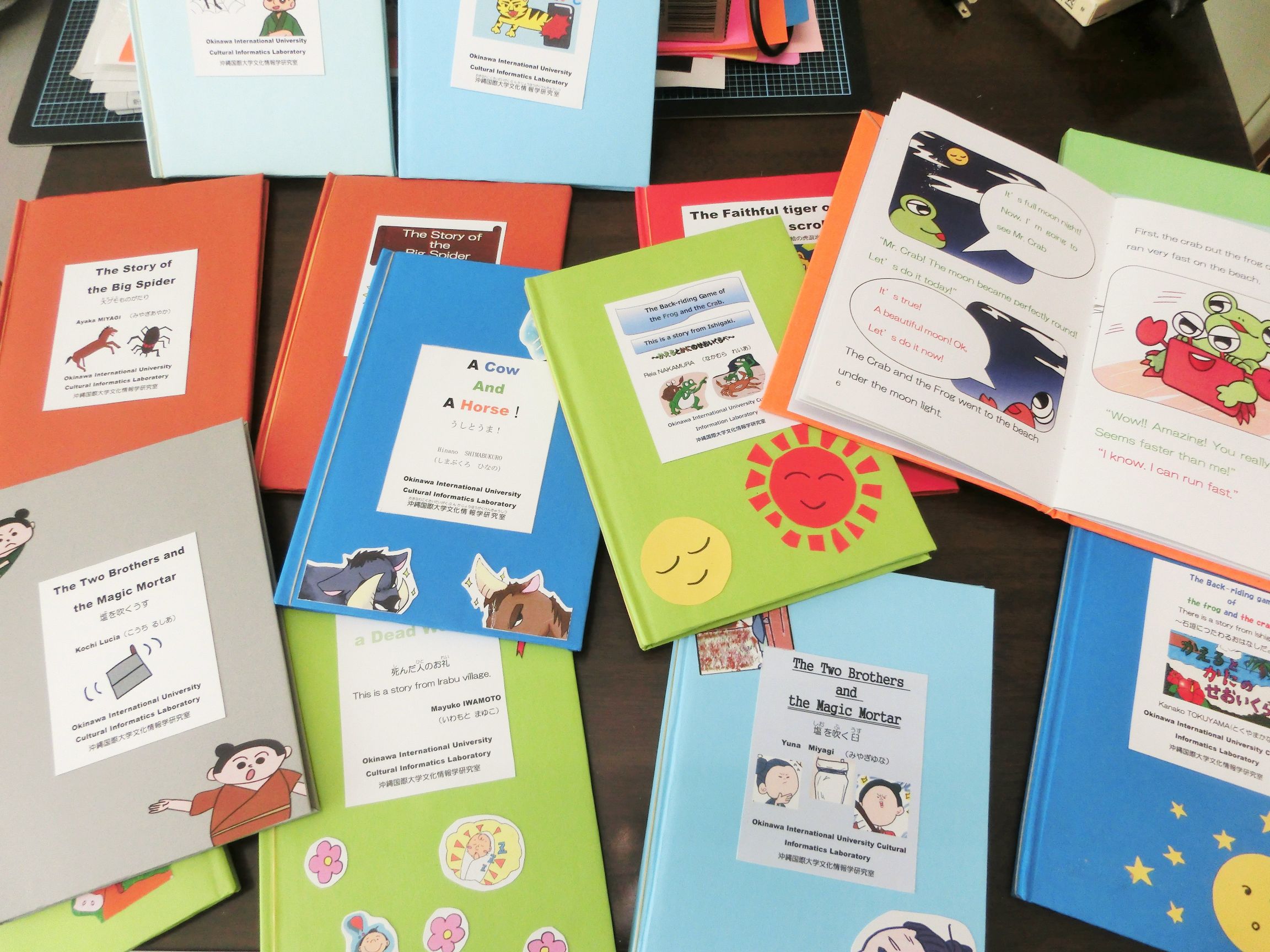 2年前からは、多文化間コミュニケーションコースのモデル学習の1つとして、沖縄の文化を海外や県内で生活する外国人の方にも伝えるための英語版絵本も作成しています。