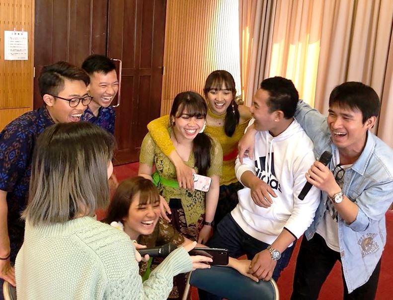 日本文化学科の多文化間コミュニケーションコースに所属し、日本語教師などを目指す学生さんたちとの交流も深めていて、この日開催された2019年度修了式&修了パーティーにも日文生がお手伝いに行ってきました。