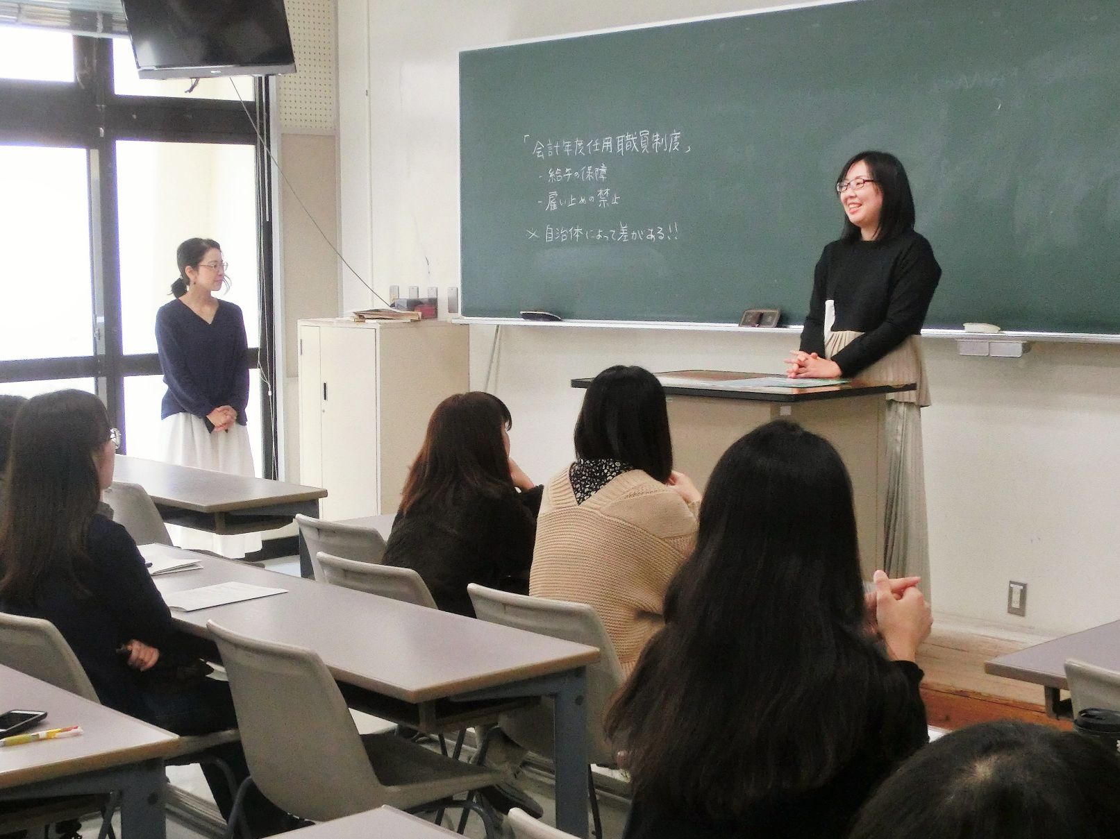 この日は、国語科教職課程の桃原千英子先生、古典文学担当の葛綿正一先生も参加し、資格取得や就職活動、アルバイトなど、それぞれ大変な中での4年間の学業を終えた4年生にねぎらいの言葉がかけられました。