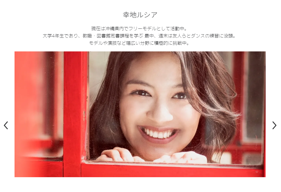 卒業を控えた日文4年生の幸地ルシアさん。在学中は教職課程や司書資格課程を学び、勉学と芸能活動をしっかり両立させつつ、モデルとして県内のテレビ・CMにも多く出演してきました。そして、昨年10月には小学館よりデジタル写真集『ルシア 南風の恋人』が発売されました。