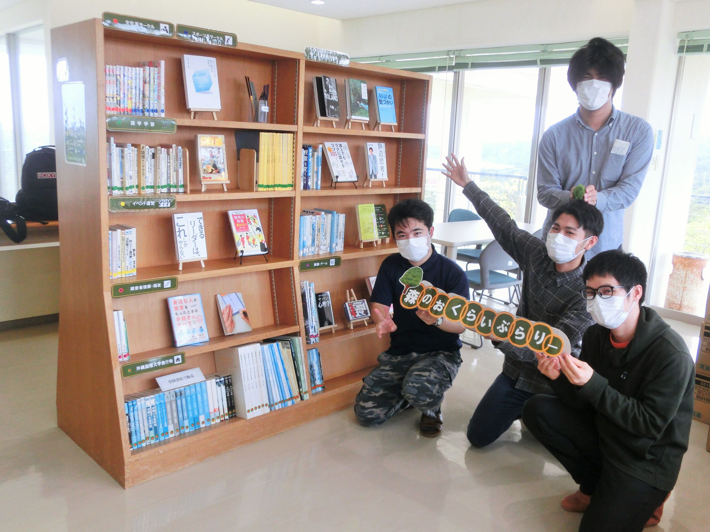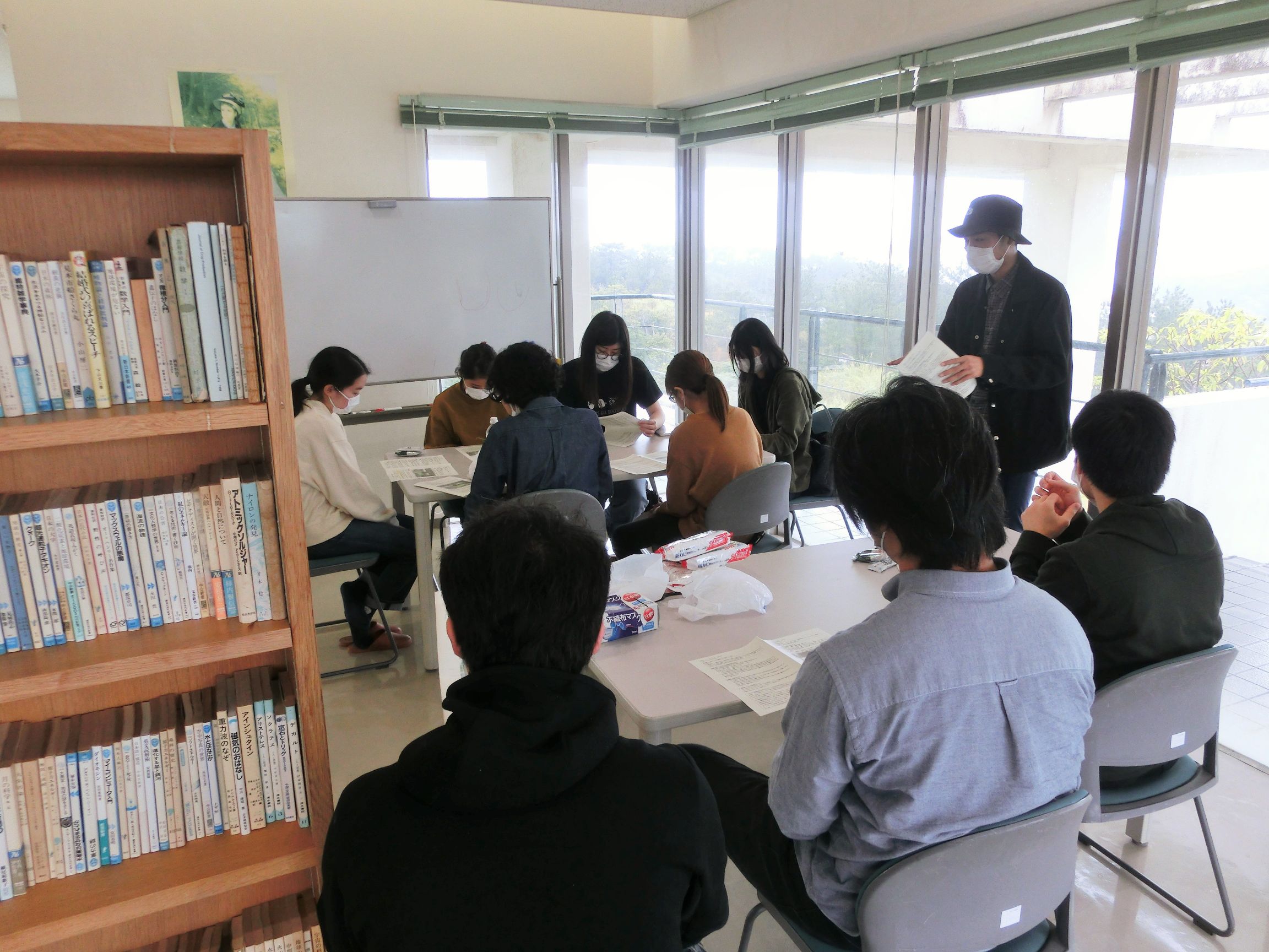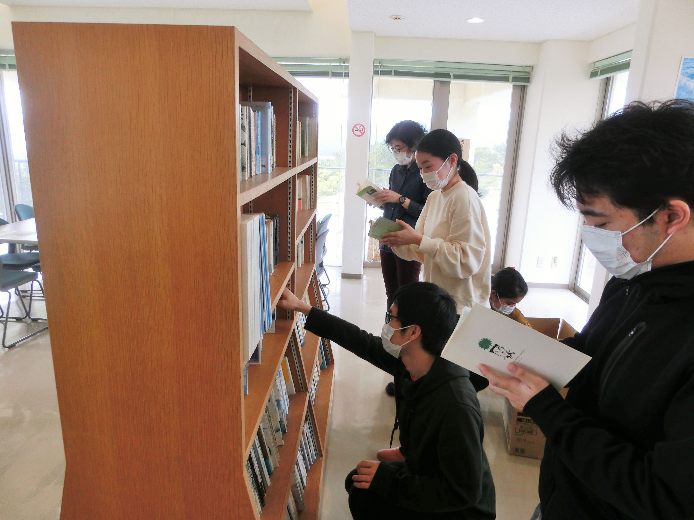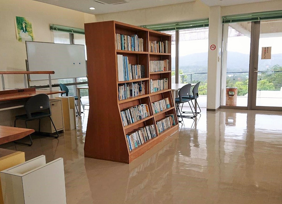 2020年2月某日、卒業を控えた図書館情報学研究室の4年生のみなさんが、指導教員の山口真也先生とともに沖縄県北部・東村にある沖縄国際大学セミナーハウスを訪問し、3Fの図書コーナーをリニューアルする実習に取り組みました。
