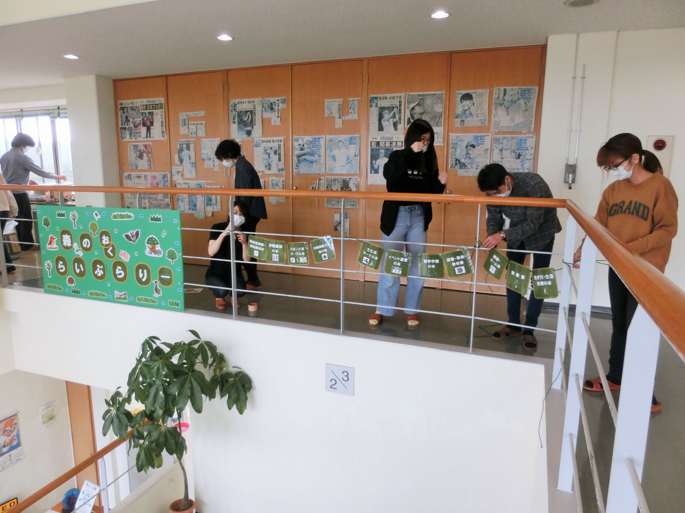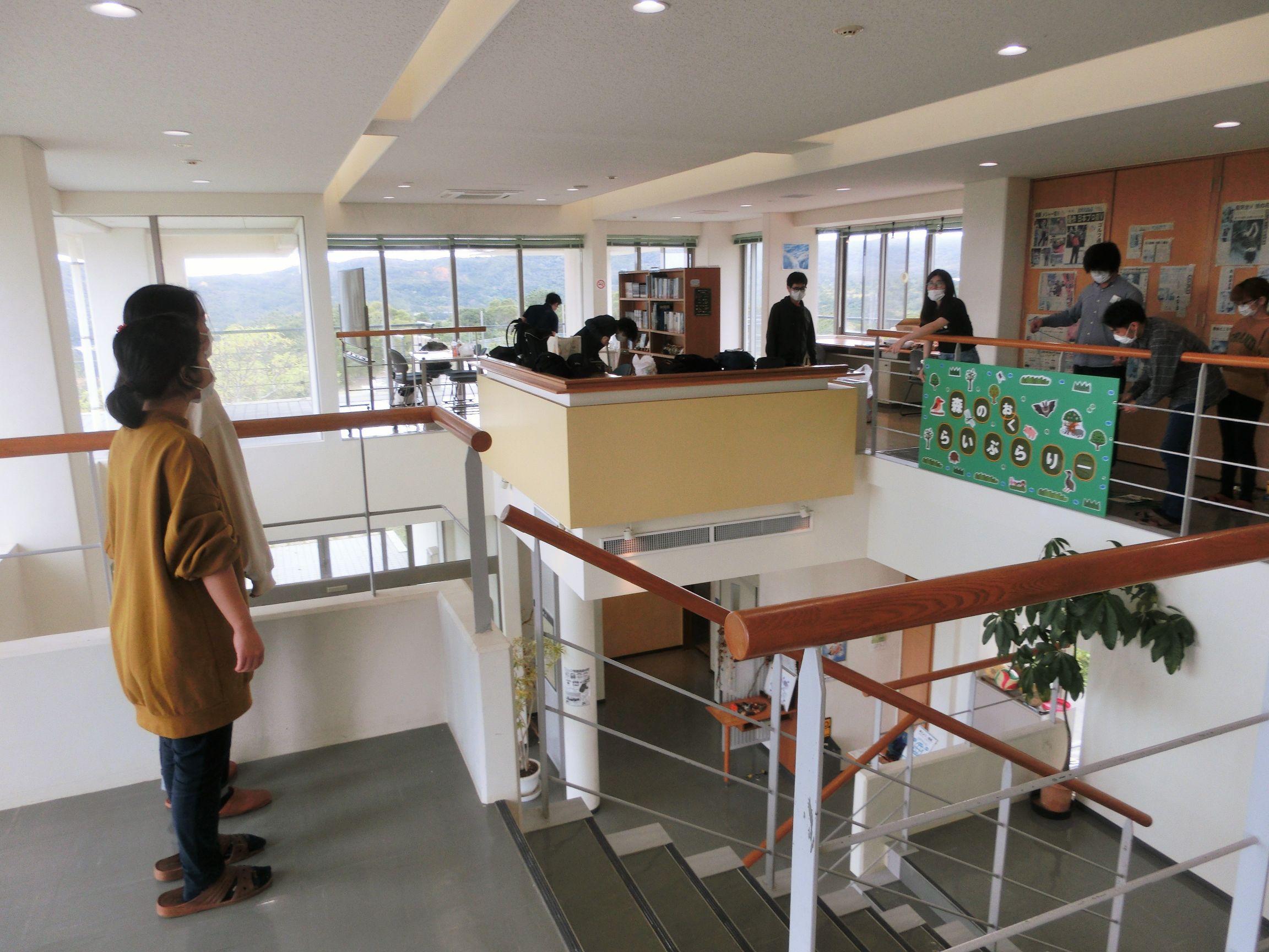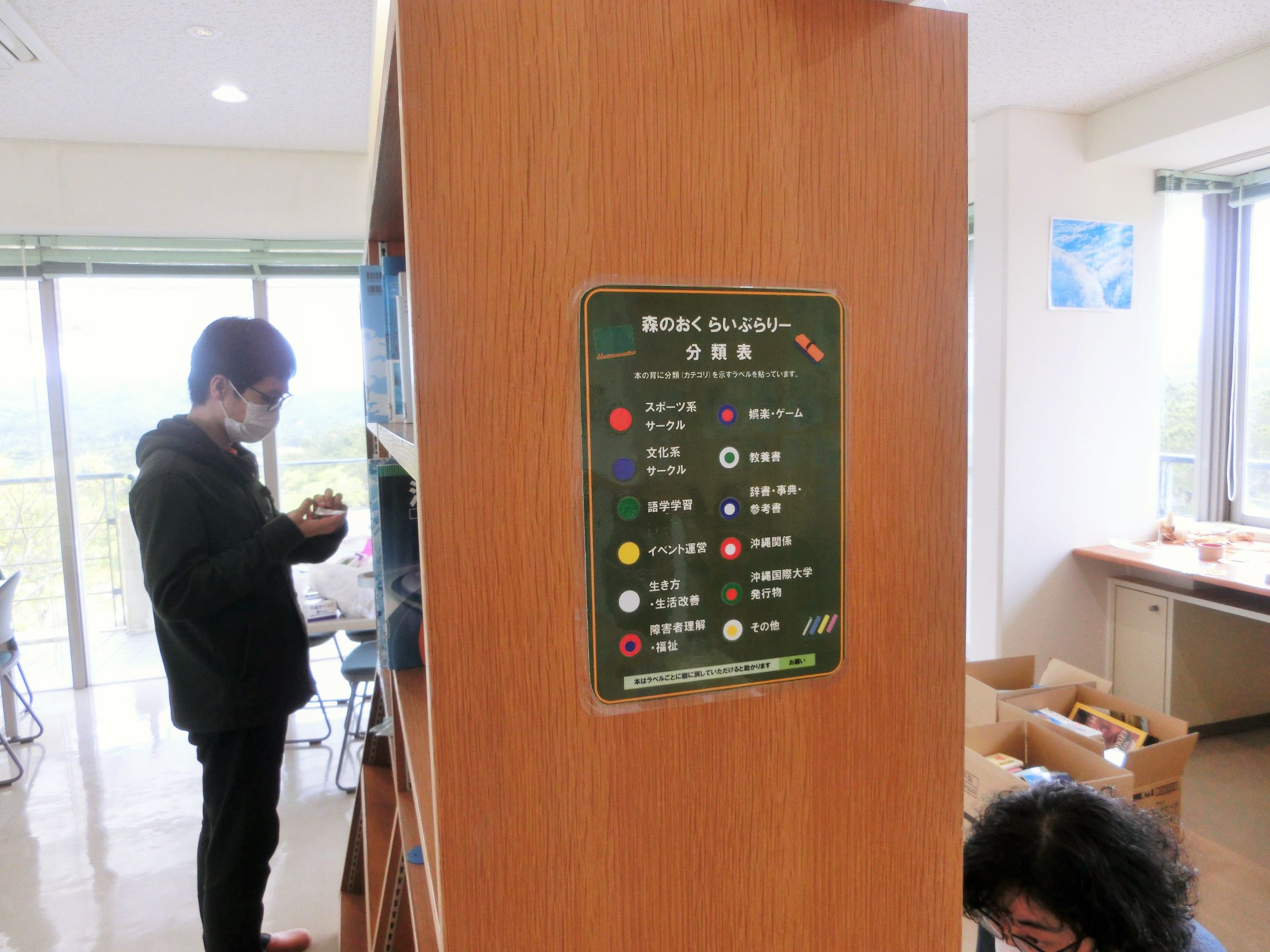 2020年2月某日、卒業を控えた図書館情報学研究室の4年生のみなさんが、指導教員の山口真也先生とともに沖縄県北部・東村にある沖縄国際大学セミナーハウスを訪問し、3Fの図書コーナーをリニューアルする実習に取り組みました。