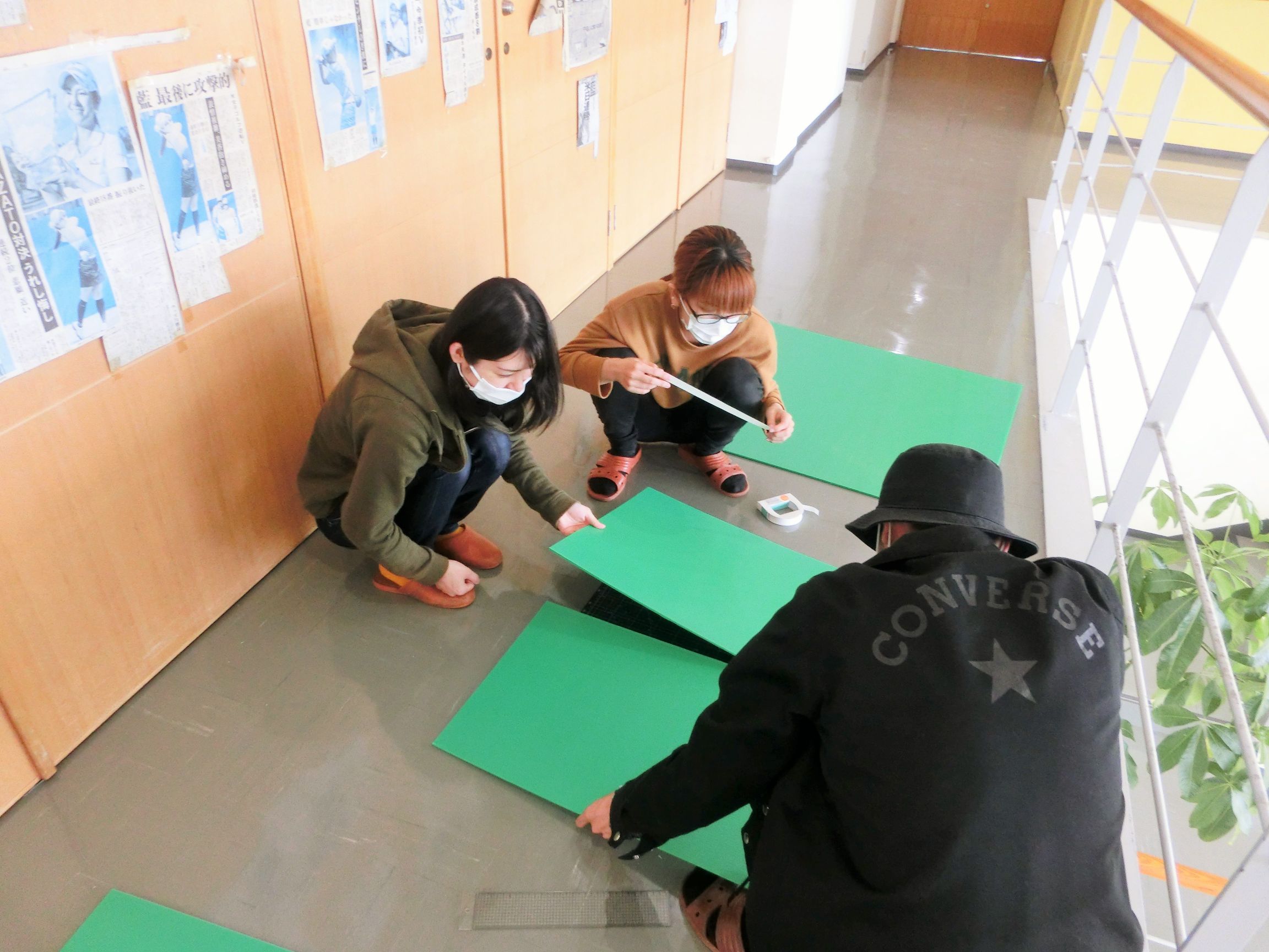 <同時進行でサインパネルも作成しました。万が一落下しても安全な軽量プラスティックボードを使いました>