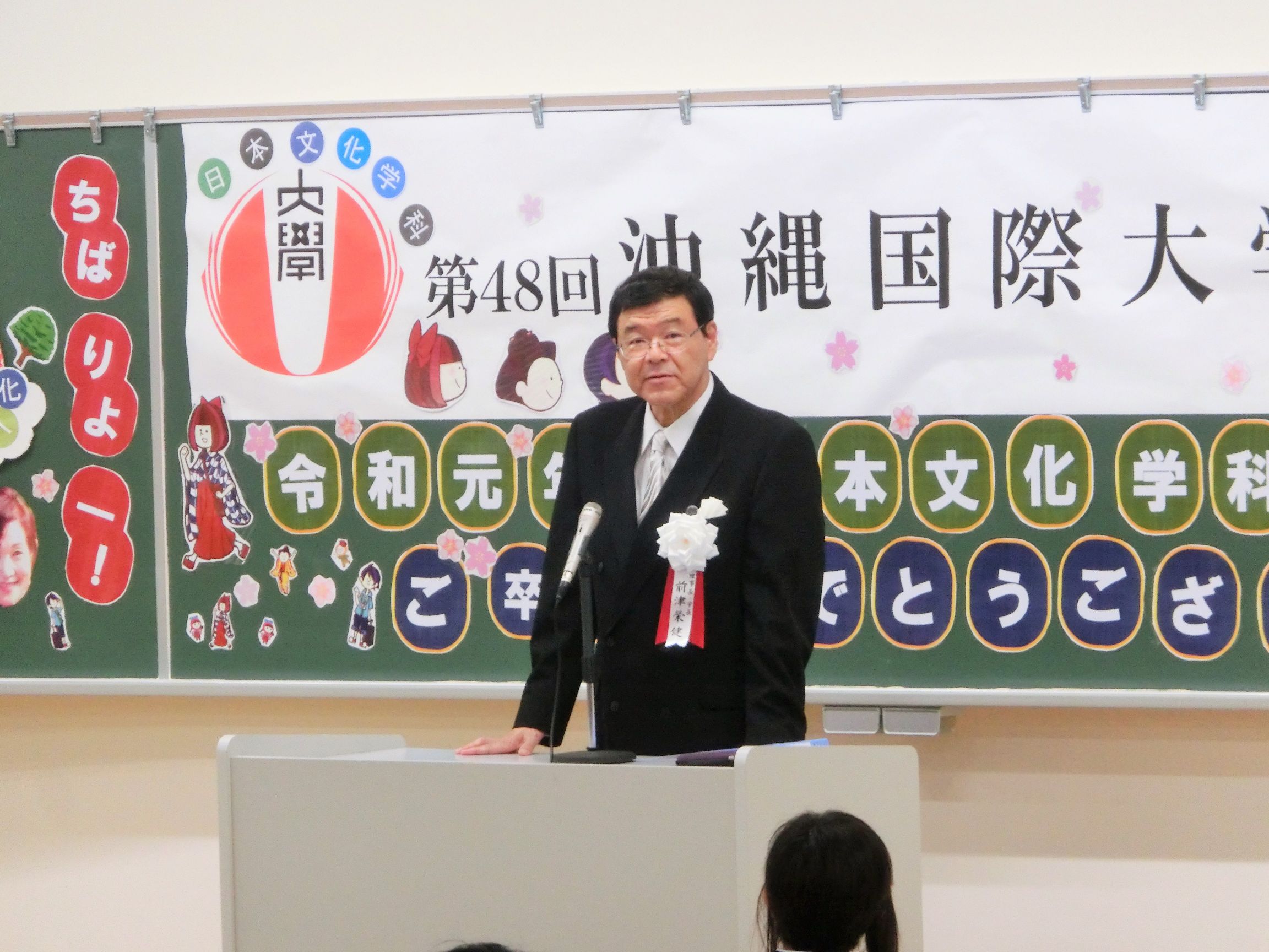 2020年3月19日、沖縄国際大学3号館大教室にて、第48回卒業式と卒業証書授与式が開催されました。