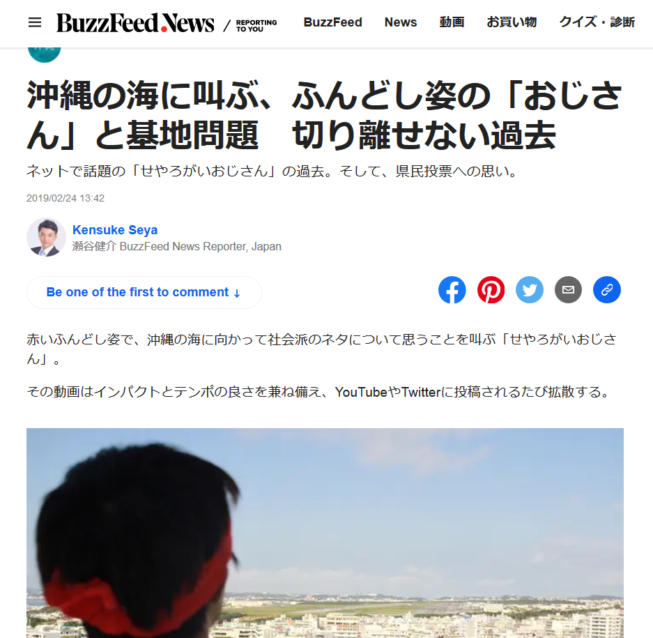 「BUZZFEED NEWS 沖縄の海に叫ぶ、ふんどし姿の「おじさん」と基地問題 切り離せない過去」