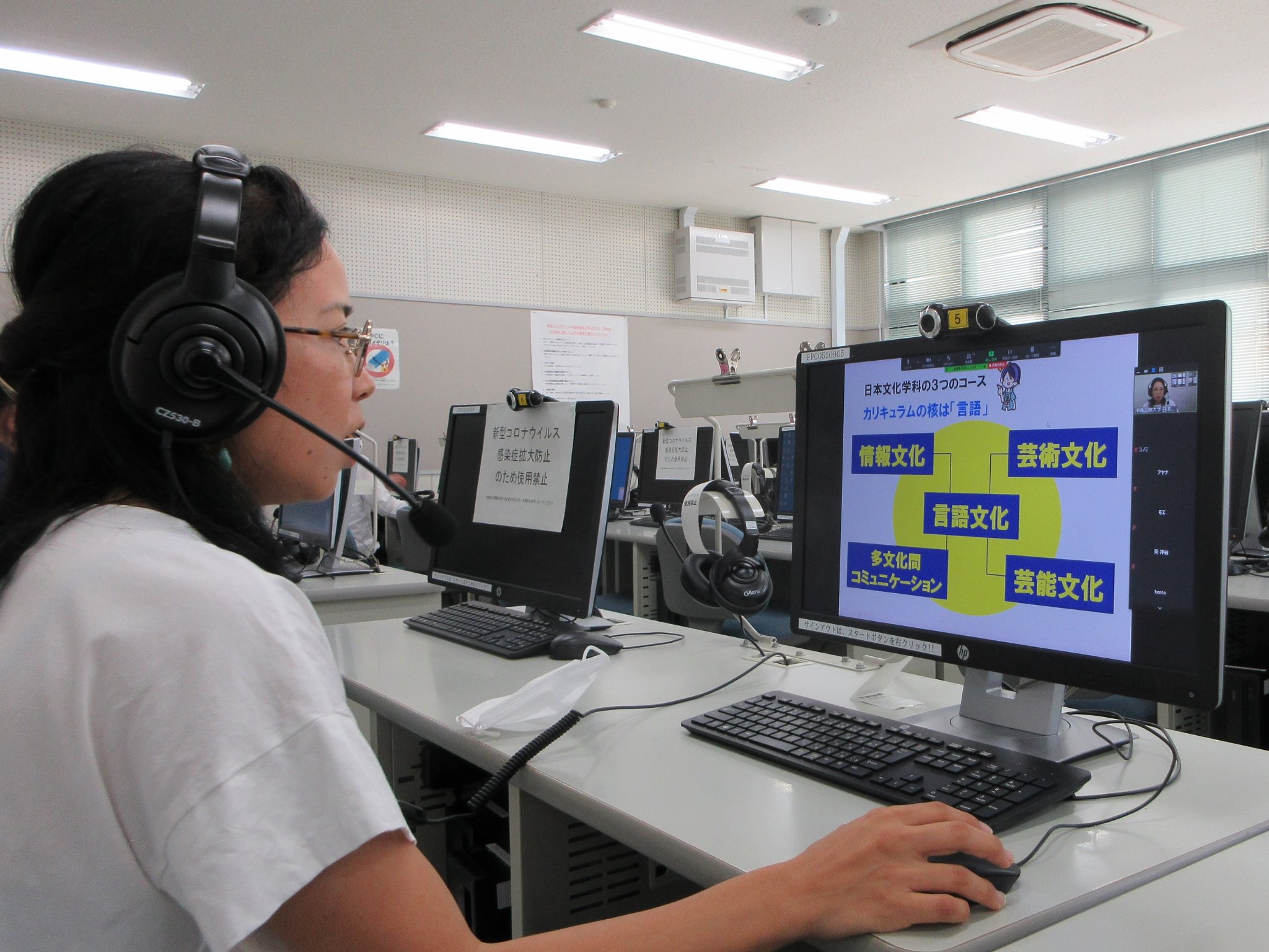 日本文化学科もオンライン会議アプリのZoomを利用してオープンキャンパスを実施、学科紹介・ミニ講義をはじめ、琉球・文学・教職課程・日本語教育課程など、各分野の先生と現役の大学生が学科のことをお話しました。たくさんの高校生が参加してくれました。初のZoom開催ということで少しトラブルもありましたが、スライドをじっくり見ながら話したり、チャット機能で高校生からの質問がたくさん出たり、充実したオープンキャンパスになりました。