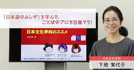 紹介するのは、日本文化学科学科長の下地賀代子先生。