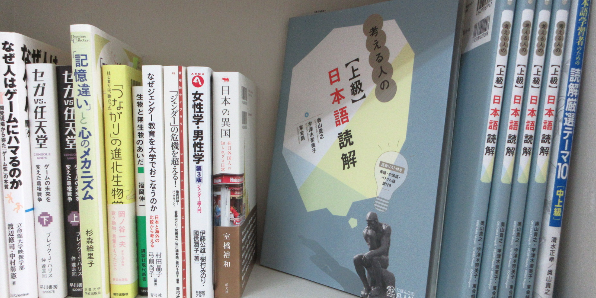 日本文化学科の多文化間コミュニケーションコースを担当、日本語教員養成や留学生の日本語クラスも担当している奥山貴之先生の著書が出版されました。『考える人のための【上級】日本語読解』(共著)凡人社は、日本語で大学や大学院への進学を希望している外国人留学生、大学初年次の外国人留学生、などを対象とした教材です。以下の四つのことがこの教材を使ってできるそうです。