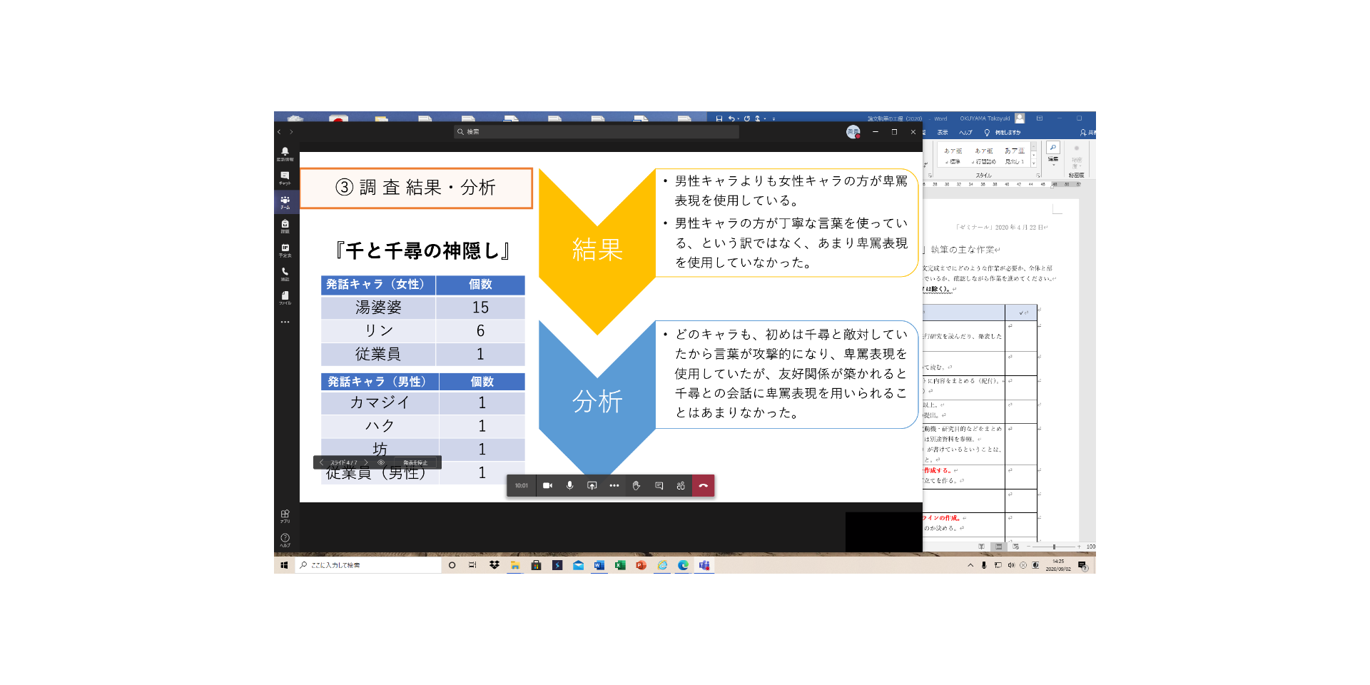 今回初めて遠隔での授業を行うにあたって、ゼミの講義をMicrosoft Teamsを使用して行っていました。Web会議の形式で授業を受けるというのは最初こそ操作の仕方などに不安はありましたが、自宅で授業を受けられてリラックスして受講できました。そのため精神的な余裕が生まれ、発言や発表が教室での授業と比較するとやりやすかったです。ゼミは、学生が発表したりディスカッションをしたりするのが中心的な活動でしたが、実際に講義内でTeamsのトーク機能(メールのやりとりをweb会議に参加している全員で同時にするような機能)を使用して意見を募った際には、参加していたほぼ全員が意見を出していました。