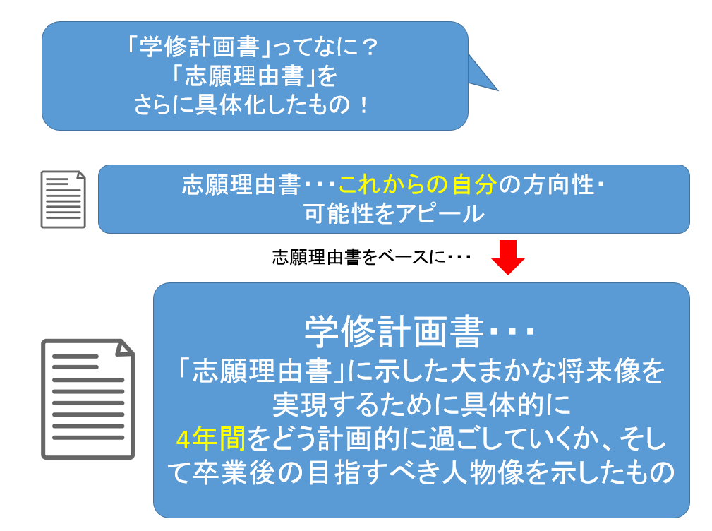 今年度から新しい入試制度がスタートし、総合型選抜試験では「学修計画書」という書類の提出が求められるようになります。この計画書がどう評価され、何を書けばいいのか、という質問が多くよせられているので、分かりやすく説明する方法を先生たちで話し合いました。