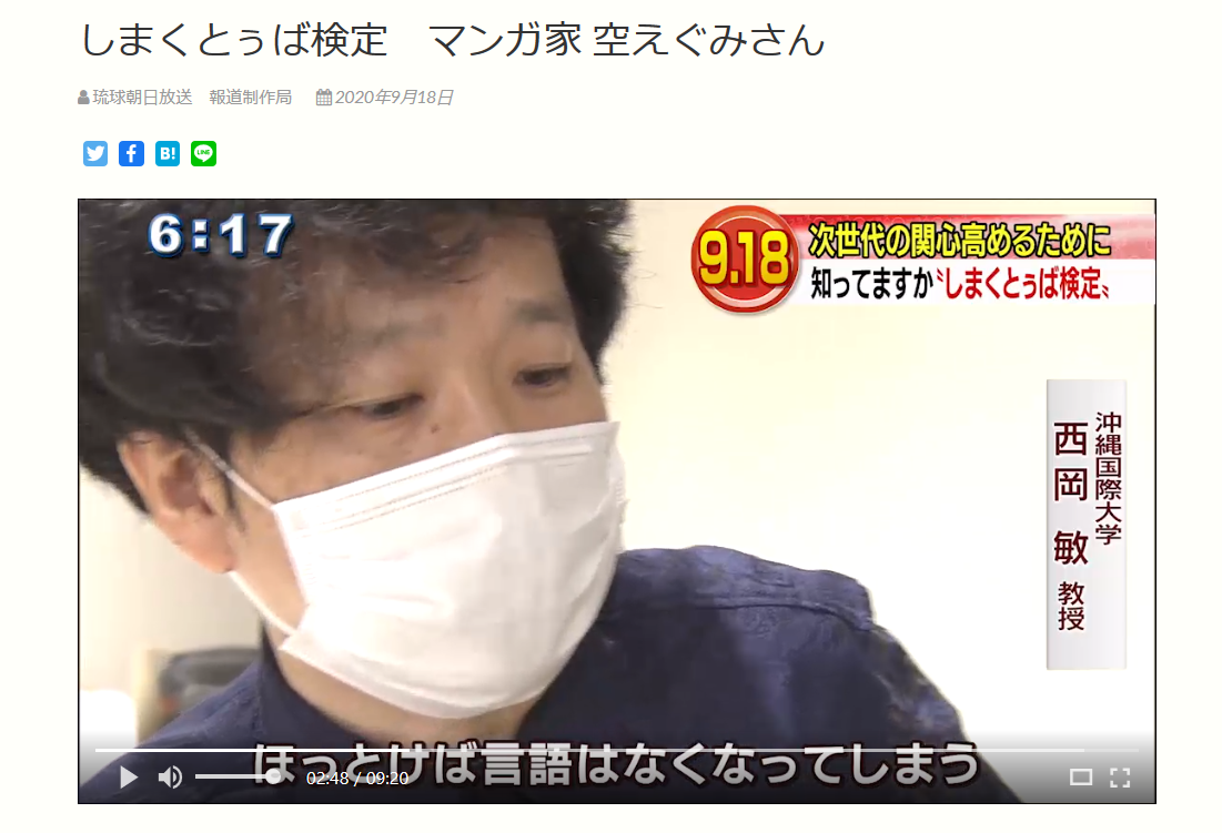 【9月18日は「しまくとぅばの日」、西岡敏先生がQABのニュースに登場!】