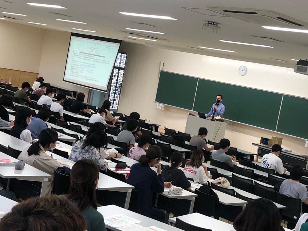 沖縄国際大学では9月23日から後期の授業の登録がスタートしています。この日は学年別オリエンテーションも開催され、1年生は対面形式で大教室を使って後期の時間割作成の注意点の説明がありました。