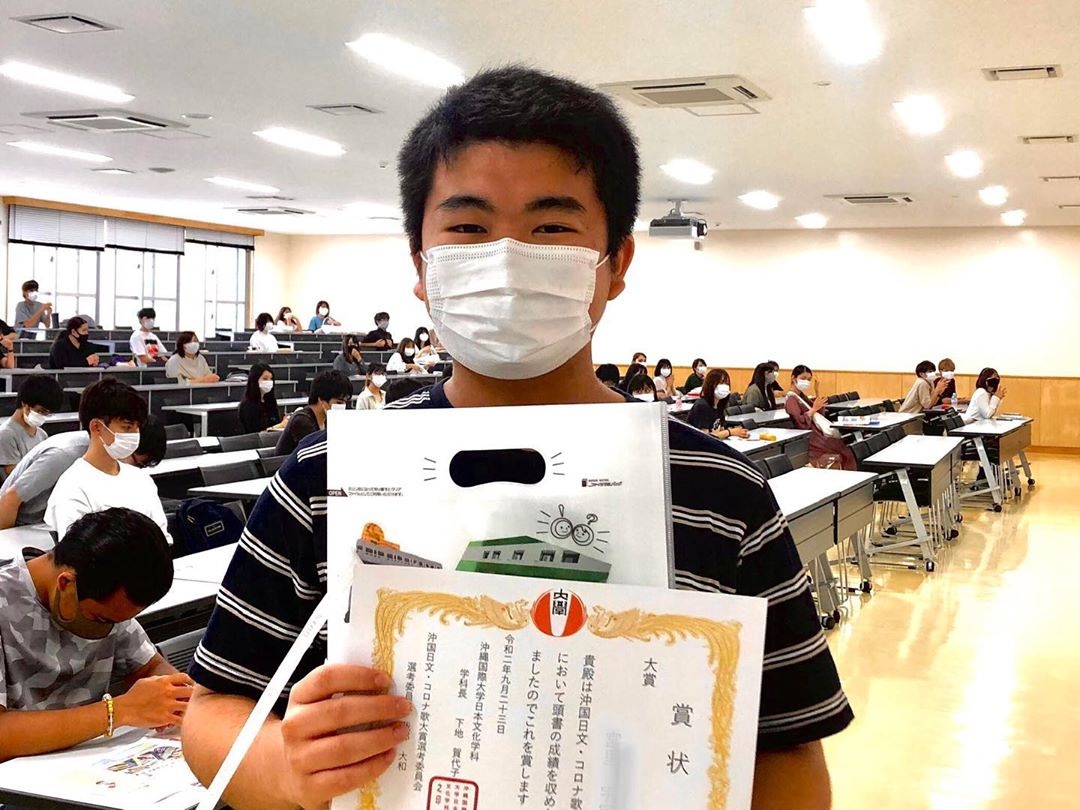 【1年生が全員参加! 「沖国日文・コロナ歌大賞」の表彰式が行われました】