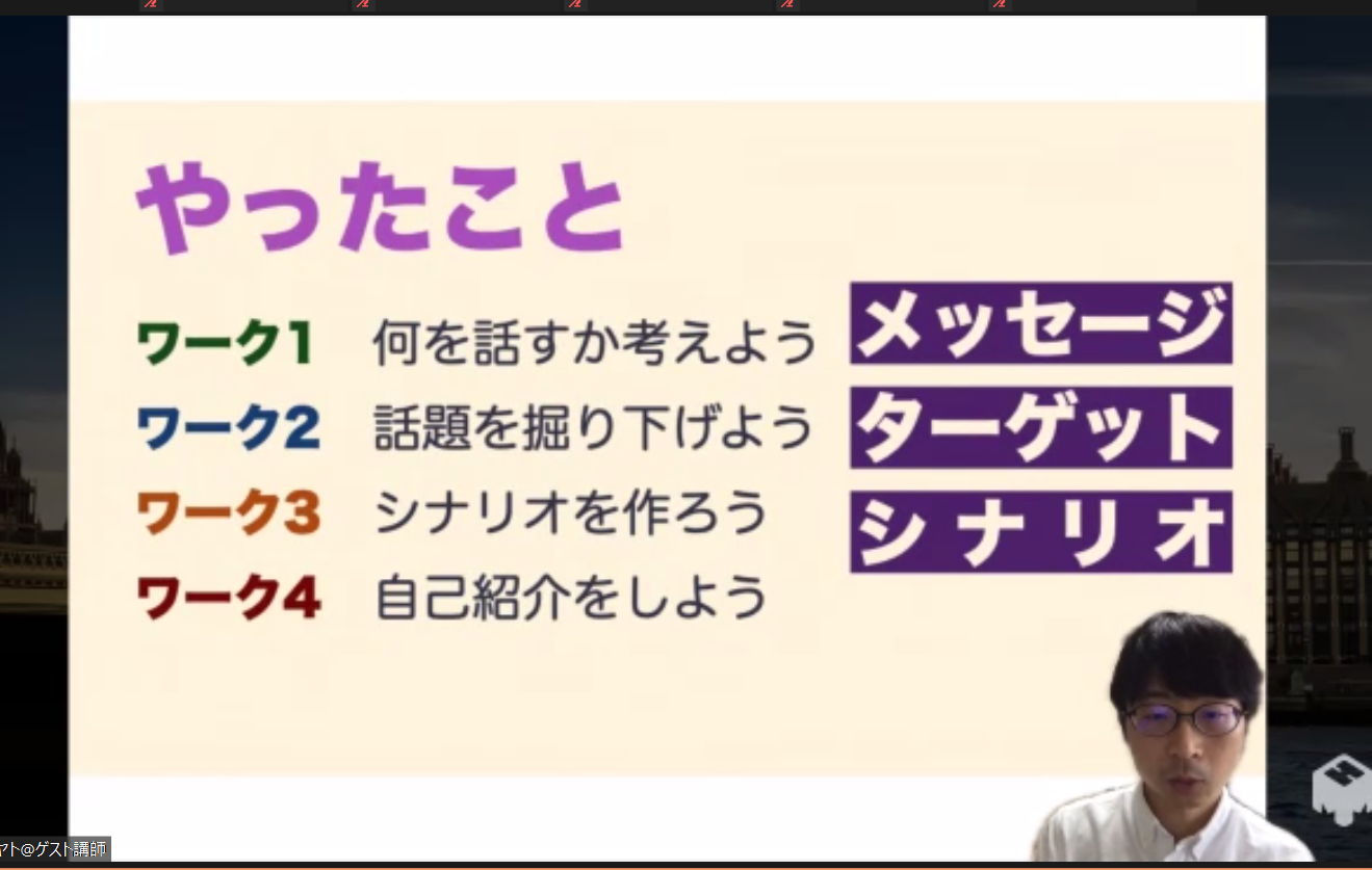 これらのワークを通して、「プレゼン」において大切な3つのポイントを学ぶことができました。
