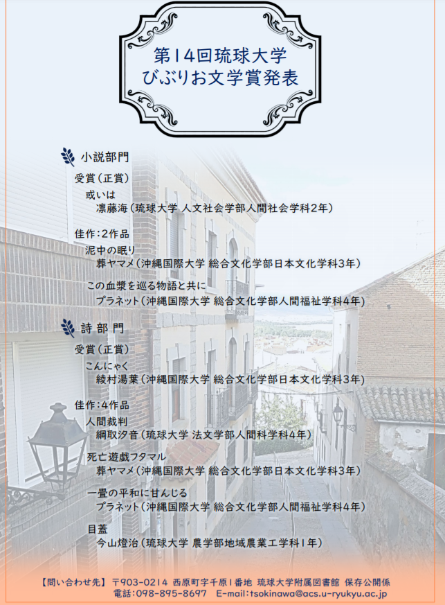 【日文3年生2名が琉球大学びぶりお文学賞に入賞しました!】