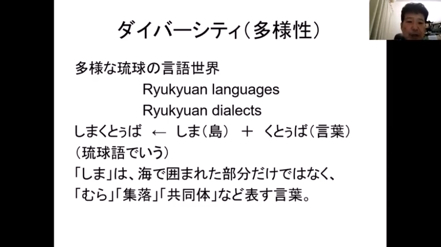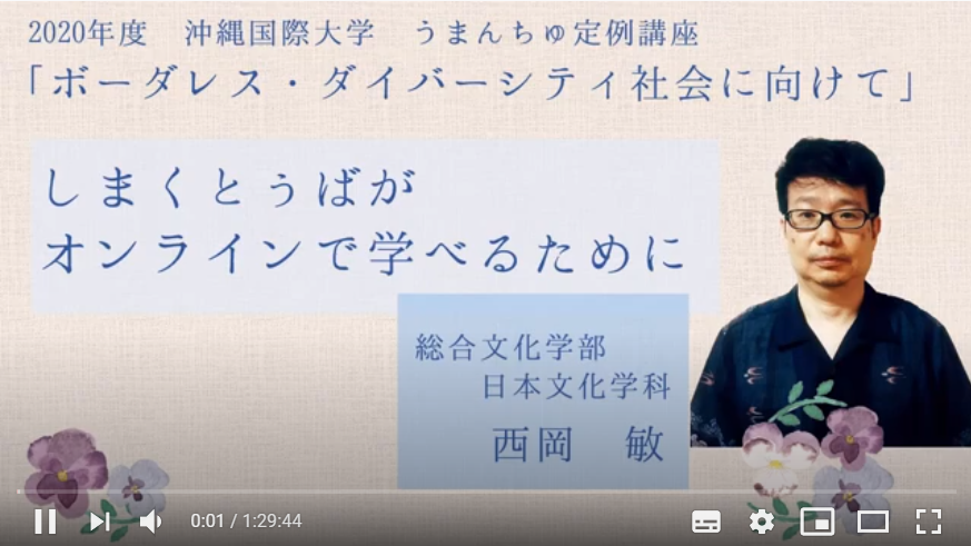 先日もお伝えした通り、2020年度沖縄国際大学うまんちゅ定例講座「ボーダレス・ダイバーシティ社会に向けて」がオンライン・オンデマンドにて開講中です。日本文化学科からは、琉球語担当の西岡敏先生も講師陣の1人として参加しています。