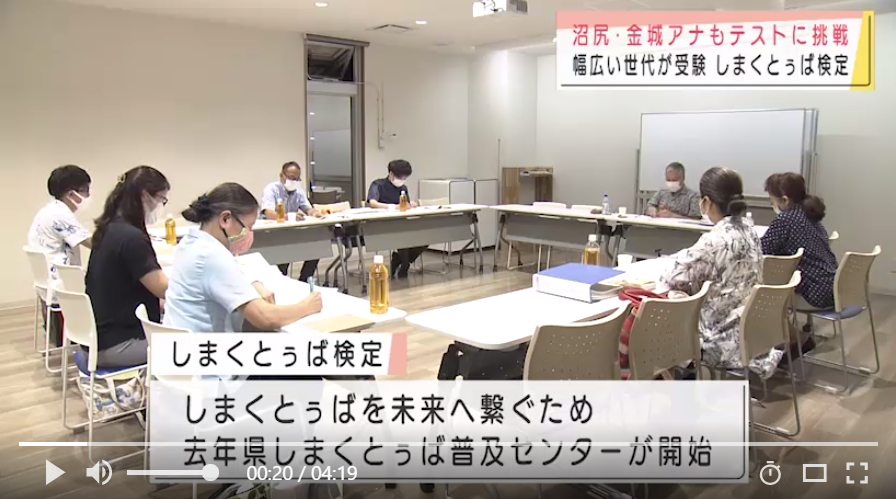 2020年12月に開催されたしまくとぅば普及センター主催による「しまくとうぅば検定」の様子を取り上げたニュースでも、西岡先生、大城朋子先生が登場しています。
