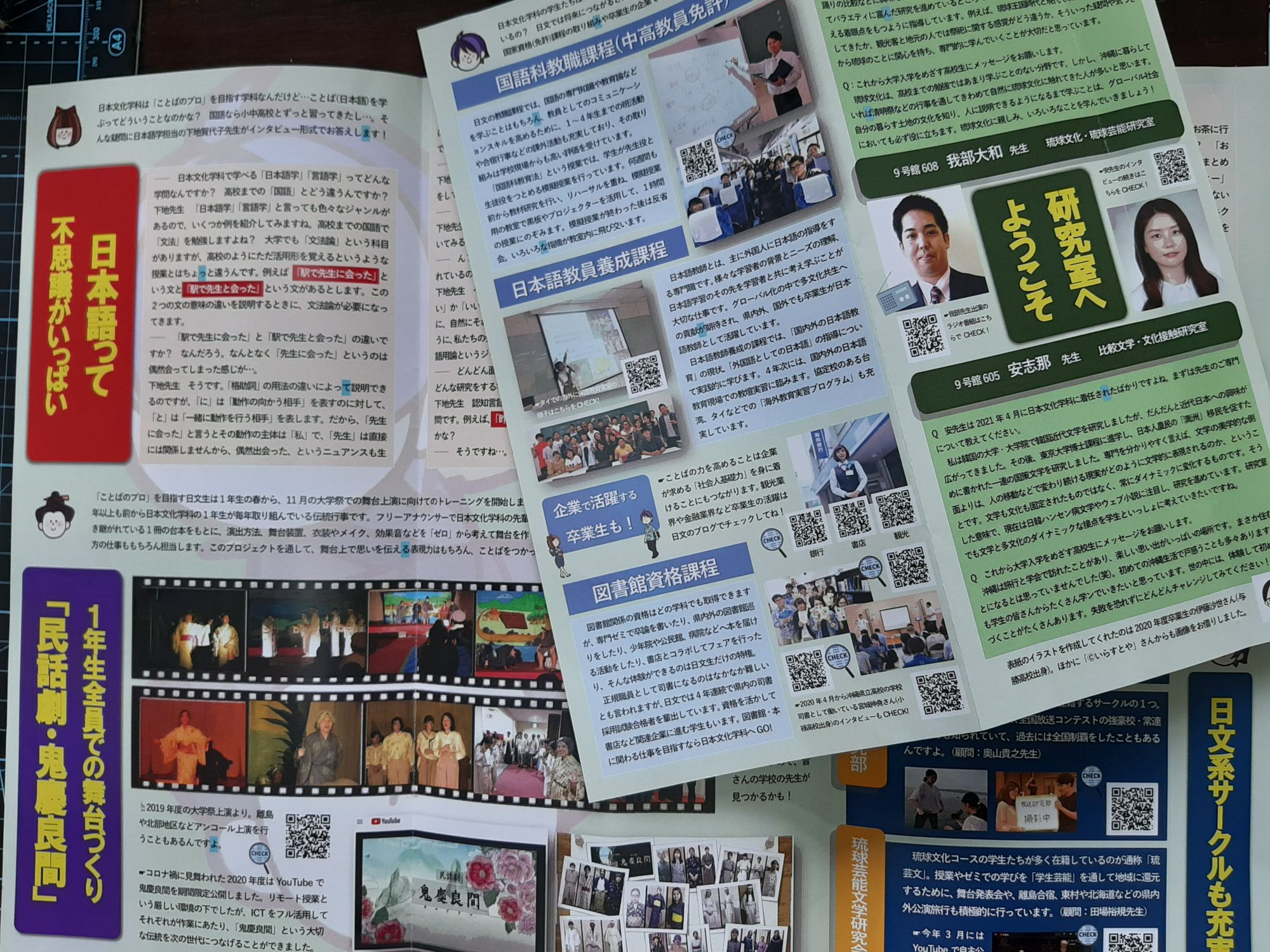 日本文文化学科では毎年、受験生向けに学科のカリキュラムや魅力を伝えるオリジナルパンフレットを作成しています。