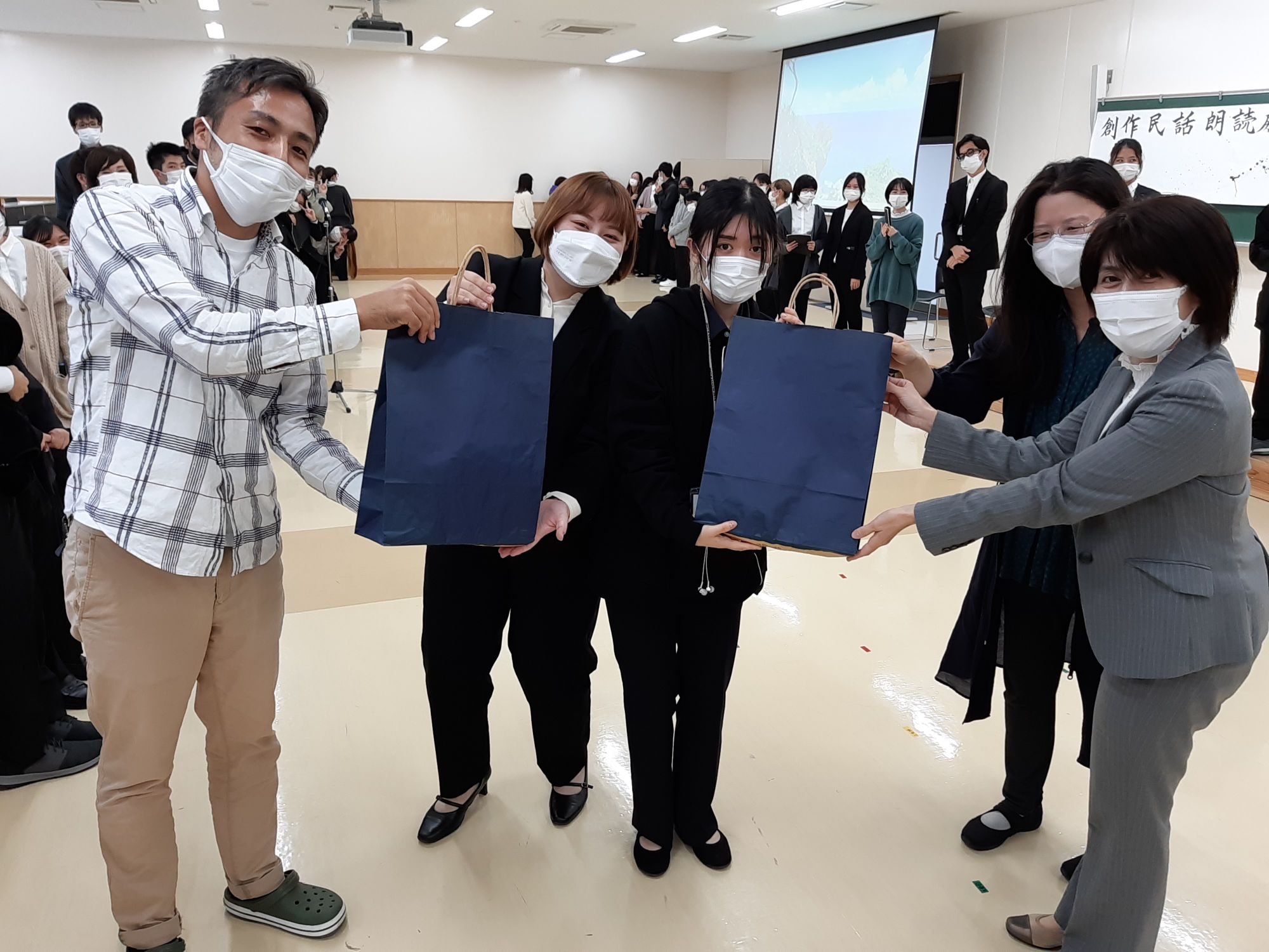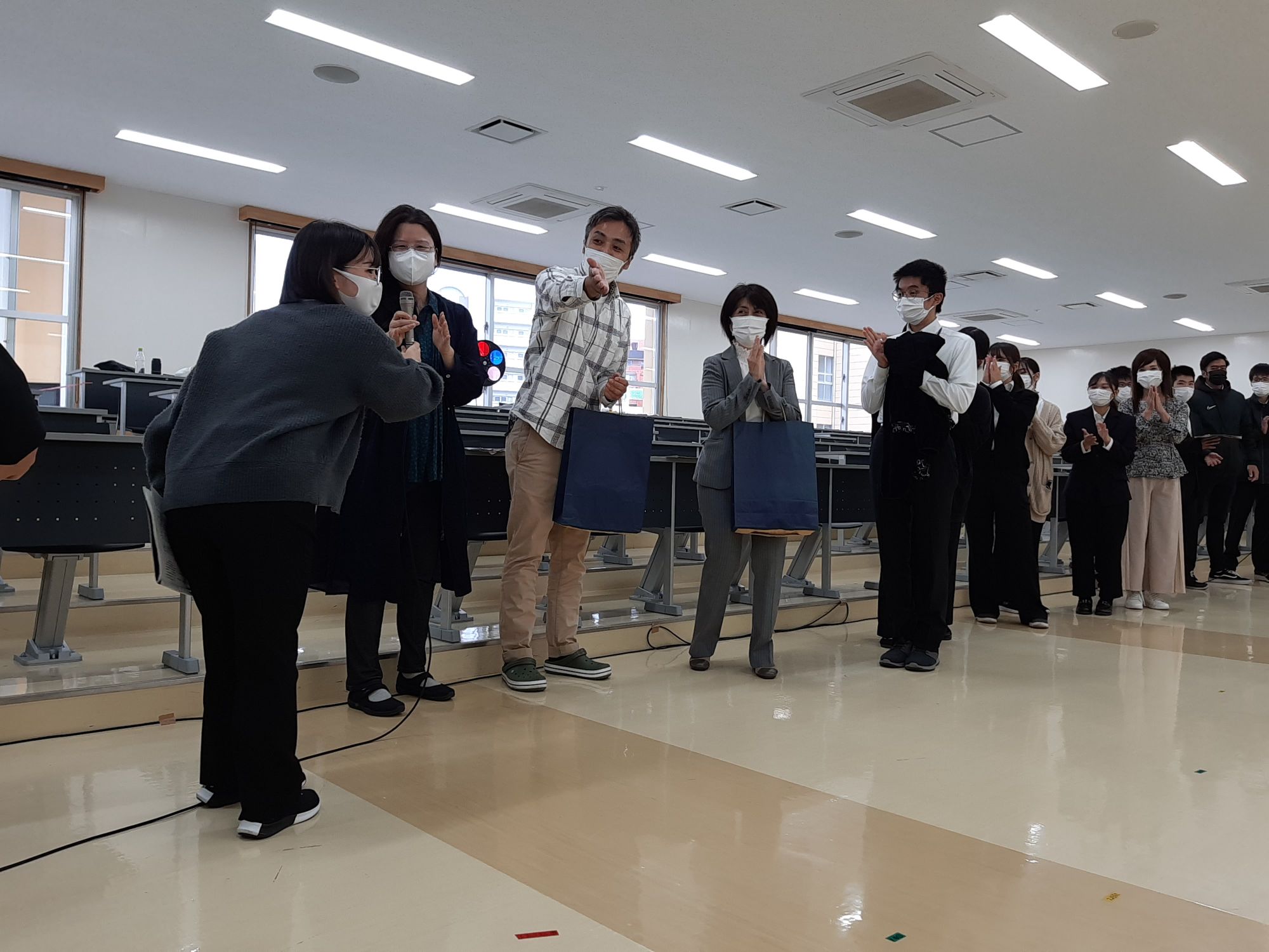 初日の上演直前の11月27日、16時頃、日本文化学科の有志の先生たちで激励に行ってきました。