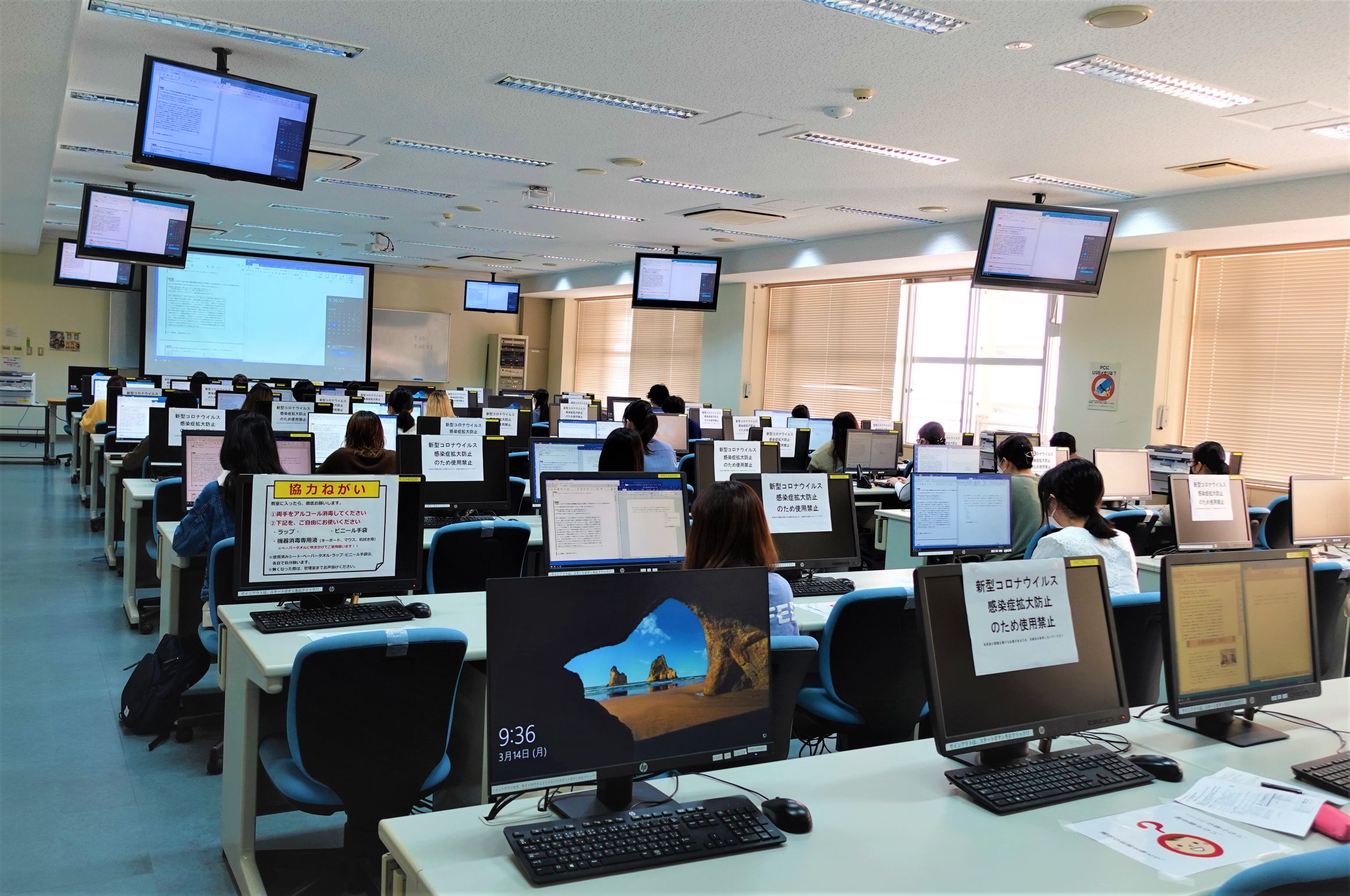 今年度の春休みは、感染対策も十分行いながら、必修科目「文化情報処理入門」や「アカデミックセミナー」と連動して、山口真也先生によるWord文書処理技能認定試験対策講座、さらに、非常勤講師の芳山先生にもご協力いただいて、日商PC検定(Excel)対策講座も集中形式で開催しています。