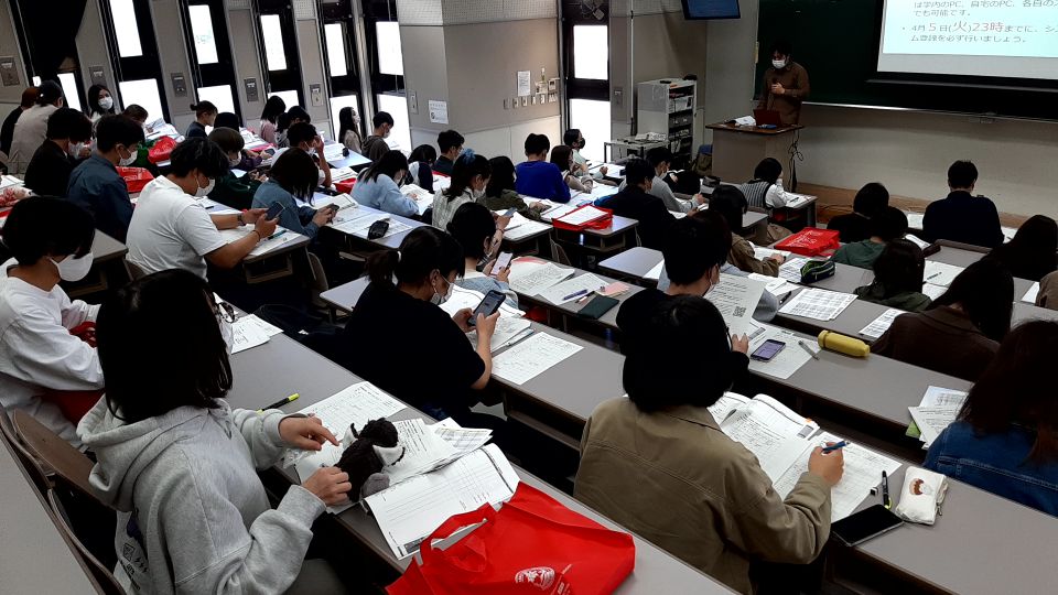 必修科目とは? 選択科目とは? 共通科目とは? 単位とは? 登録制限単位とは? 制限単位に含まれない資格科目とは? ---はじめて知る言葉ばかりで、戸惑いながらも、各クラスの担任の先生たちや、司書課程・日本語教育副専攻課程担当の先生たちにもサポートしてもらいながら、少しずつですが、1人1人が自分のペースで大学の授業登録のシステムをマスターしていっている様子が印象的でした。