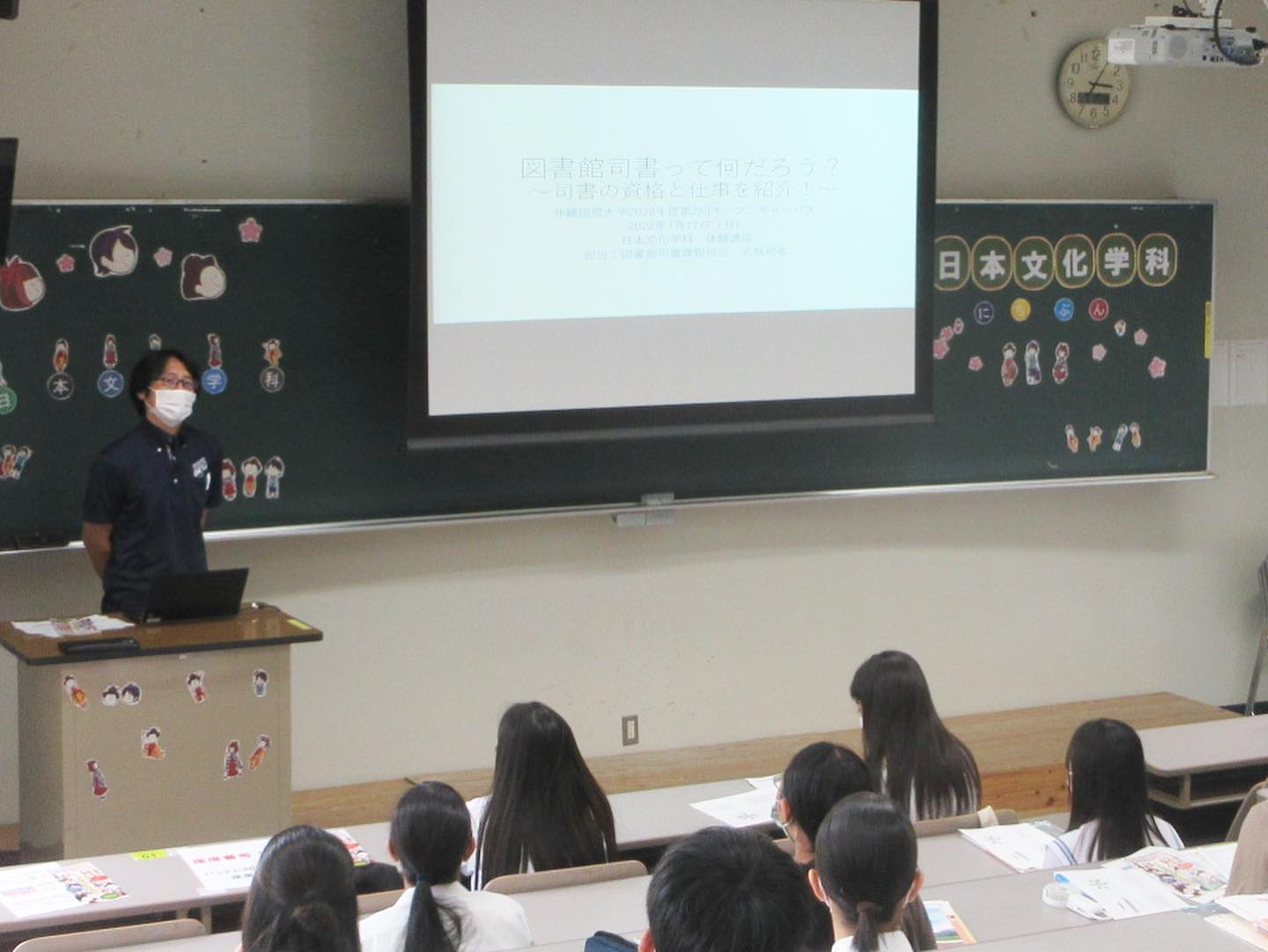 体験講座は、日本文化学科の受験生が多く将来目標として設定する「国語の先生」と「図書館司書」をテーマとした2本立て。
