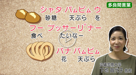 7月20日に放送されたQABのニュース番組「CATCHY 第2部 」の「めーにち しまくとぅば Season3 」のコーナーにて、日本文化学科で日本語学と琉球語学の授業を担当している下地賀代子先生が、多良間島のことばを紹介しました。