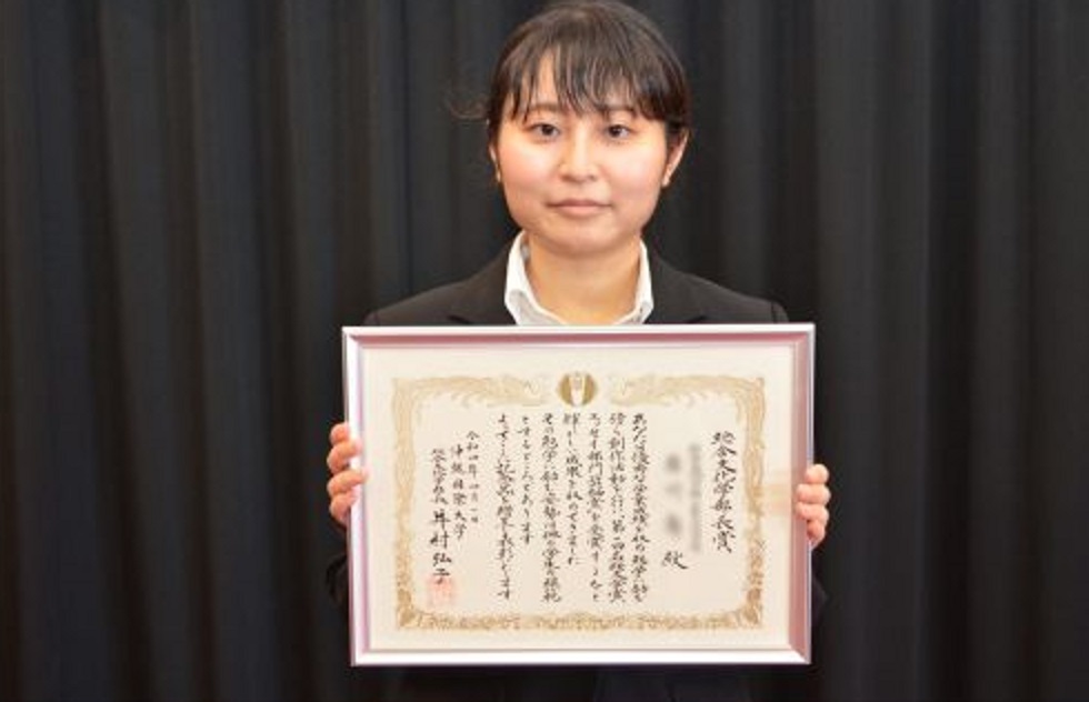 学部長賞は「人物及び学業ともに優秀な成績を修めた者」、校友会長賞は「文化活動及びその他の分野で本学の社会的評価の高揚に著しく貢献したと認められる個人及び団体」に対して贈られる賞で、日本文化学科より、3年生の石川さんが受賞しました。