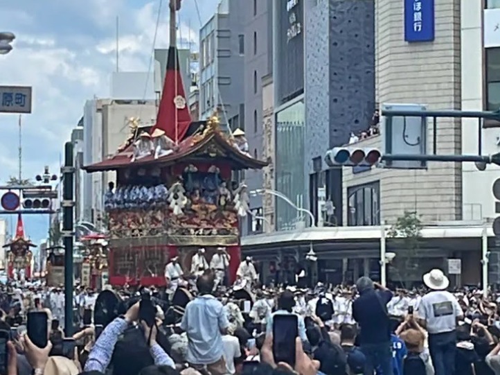 行事としては「祇園祭」にも行きました。祭り全体が1ヶ月に及ぶ京都の三大祭りの1つです。コロナの影響で3年ぶりの開催ということで沢山の人で溢れていました。その中の山鉾巡行と呼ばれる儀式ではテレビ中継などもされていましたが、生で見るとビルをも越えるその大きさに圧倒されるのでぜひ本場で見ていただきたいです!このように1年を通してその季節それぞれの風物詩を見ることができます。