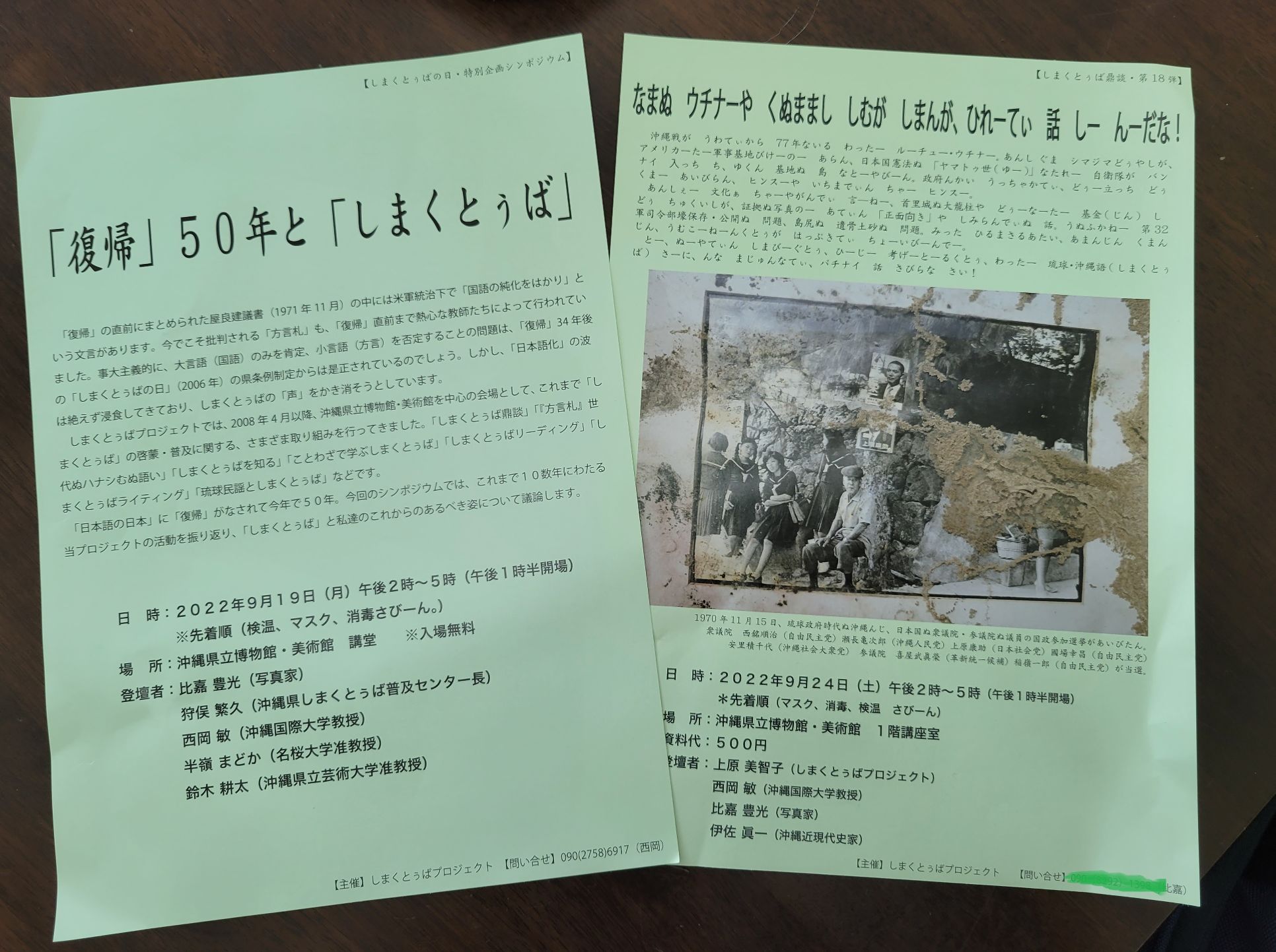 主催は西岡先生もメンバーの一人として活動している「しまくとぅばプロジェクト」です。