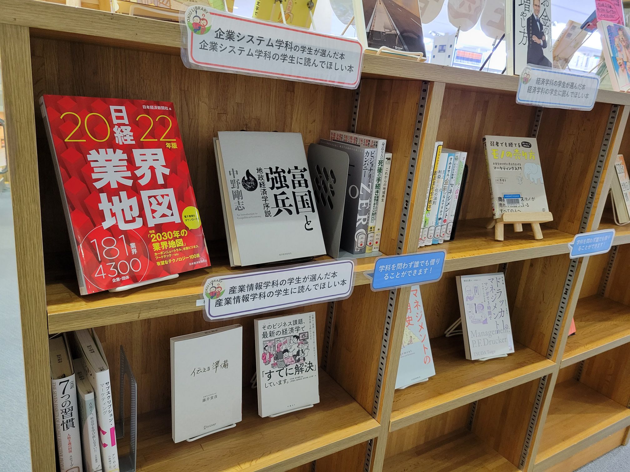 このイベントでは、各学科と大学院を代表する学生のみなさんに、1人あたり●万円の予算の範囲内で、学生目線で、日々の大学生活(授業や部活動、進路決定など)に必要な資料を幅広く図書館に推薦してもらい、図書館の選書基準をもとに購入しています。