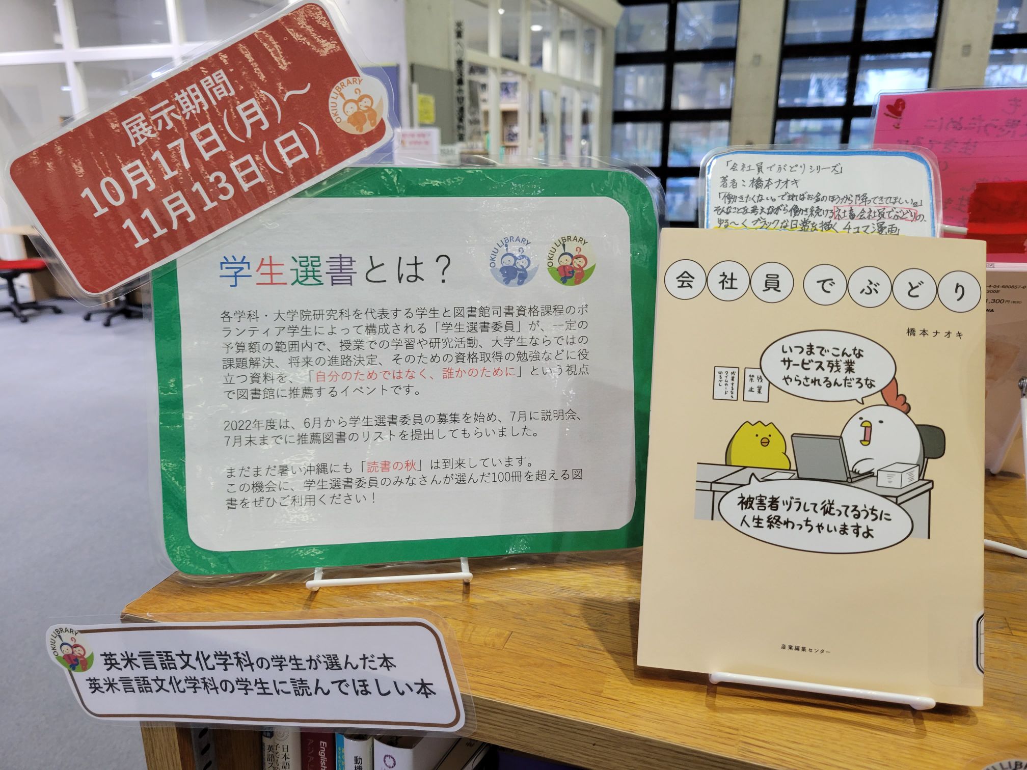 沖縄国際大学図書館では、毎年、「学生選書」というイベントを開催しています。