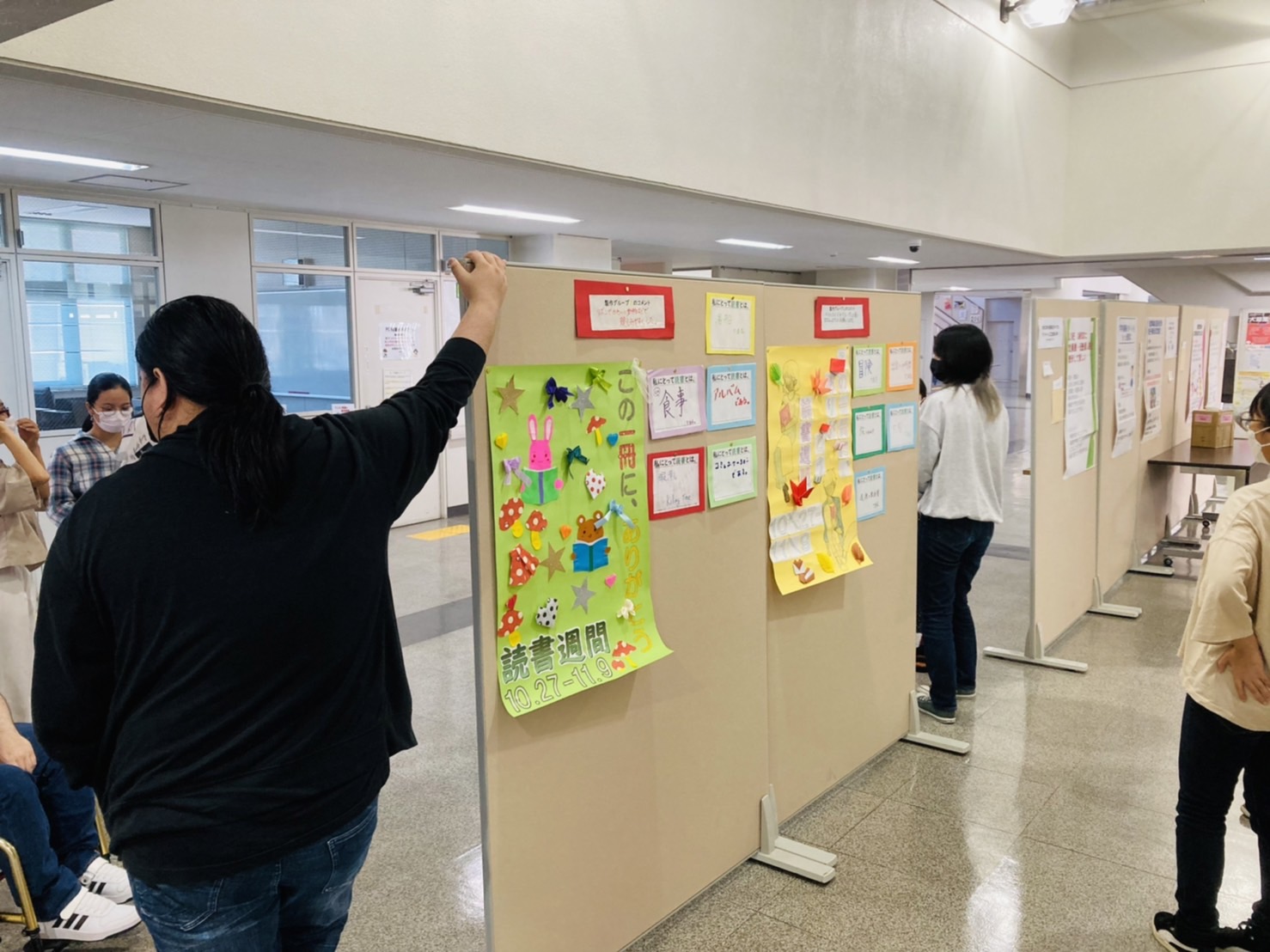 学生一人ひとりが考えた「読書」のイメージもとても個性的で面白いので、学内のみなさまはぜひご覧いただき、あなたにとっての読書とはなにか、考えていただければと思います。