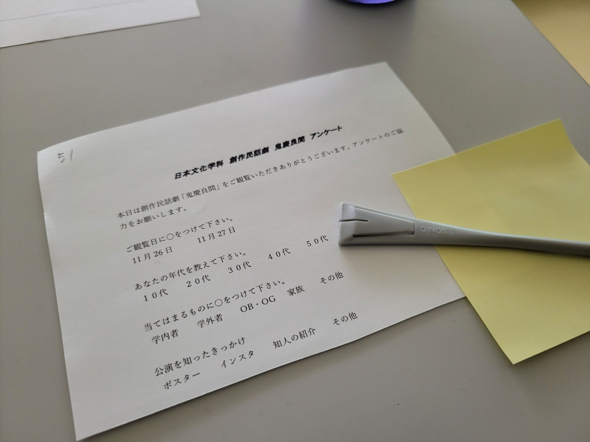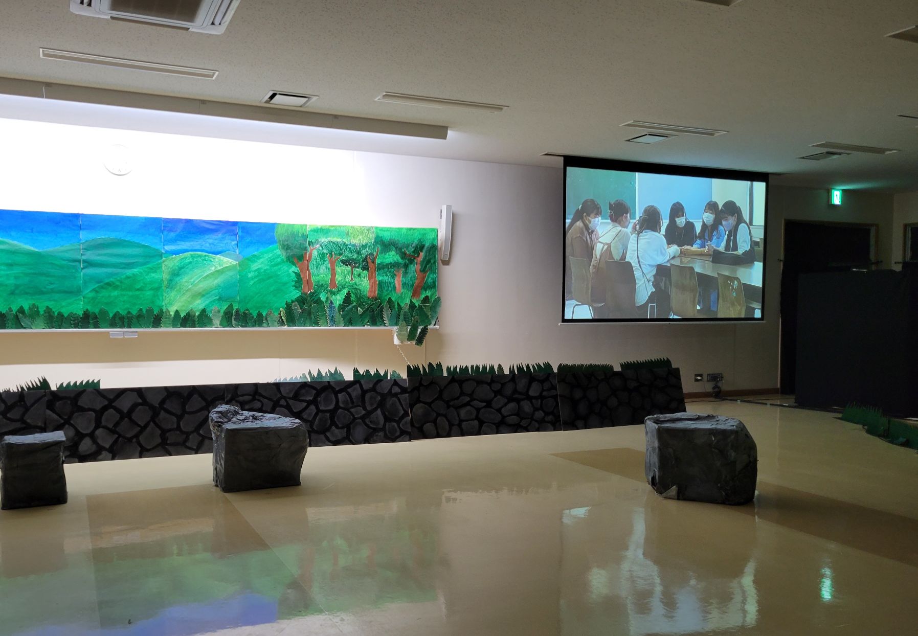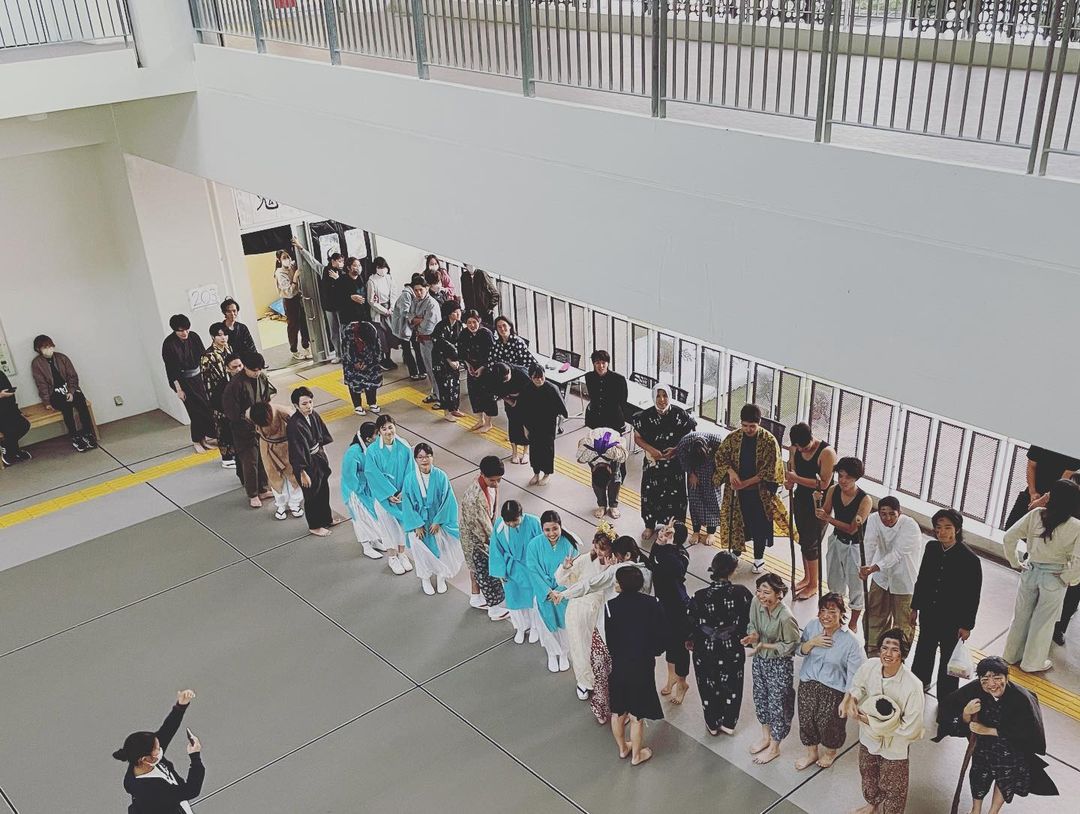 このプロジェクトは、衣装からメイク、大道具、小道具、舞台装置、照明までゼロから新1年生が考えていくという課題になっています。SNSには舞台の写真のアップができないので、開始前の雰囲気と、終了後のお見送りの様子を少しだけご紹介します。