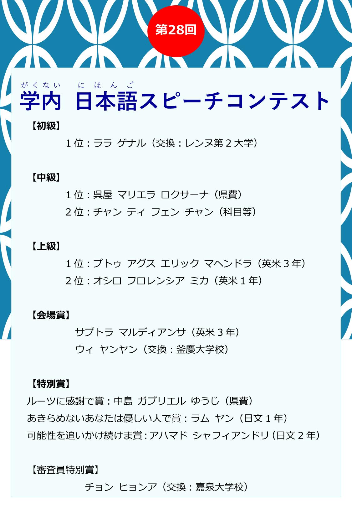 【第28回 日本語スピーチコンテストが行われました】