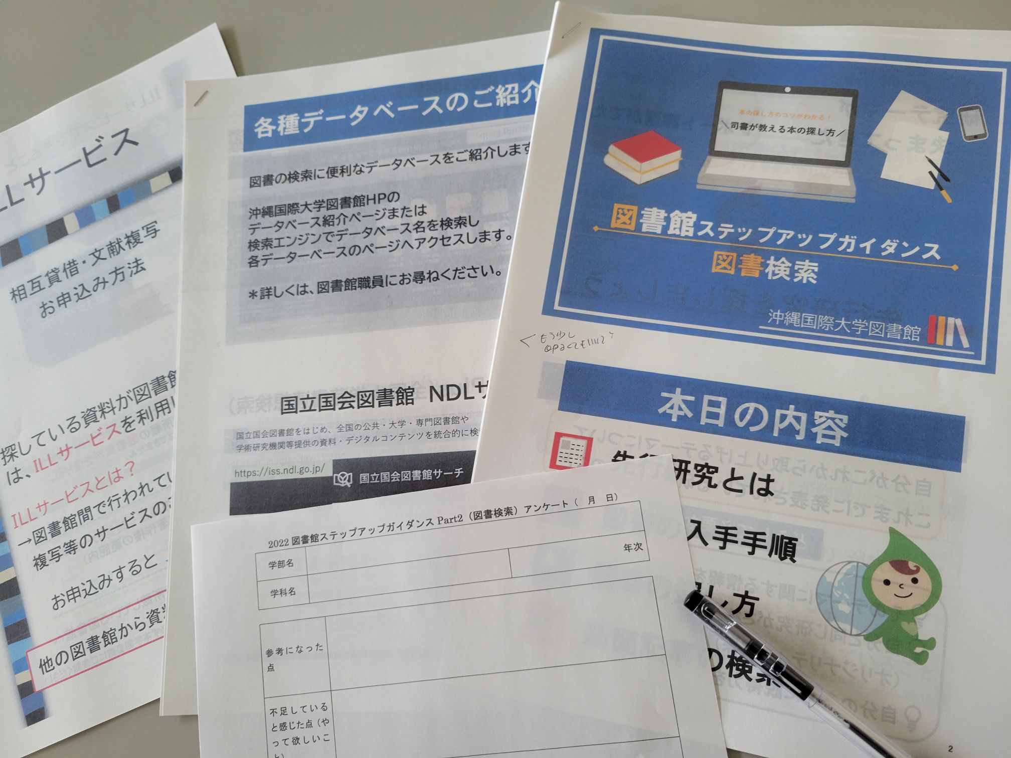 沖縄国際大学図書館では、学生のみなさんが図書館をレポートや研究、日々の課題解決にうまく活用することができるように、前期後期に数回、「ステップアップガイダンス」というミニ講座を開催しています。