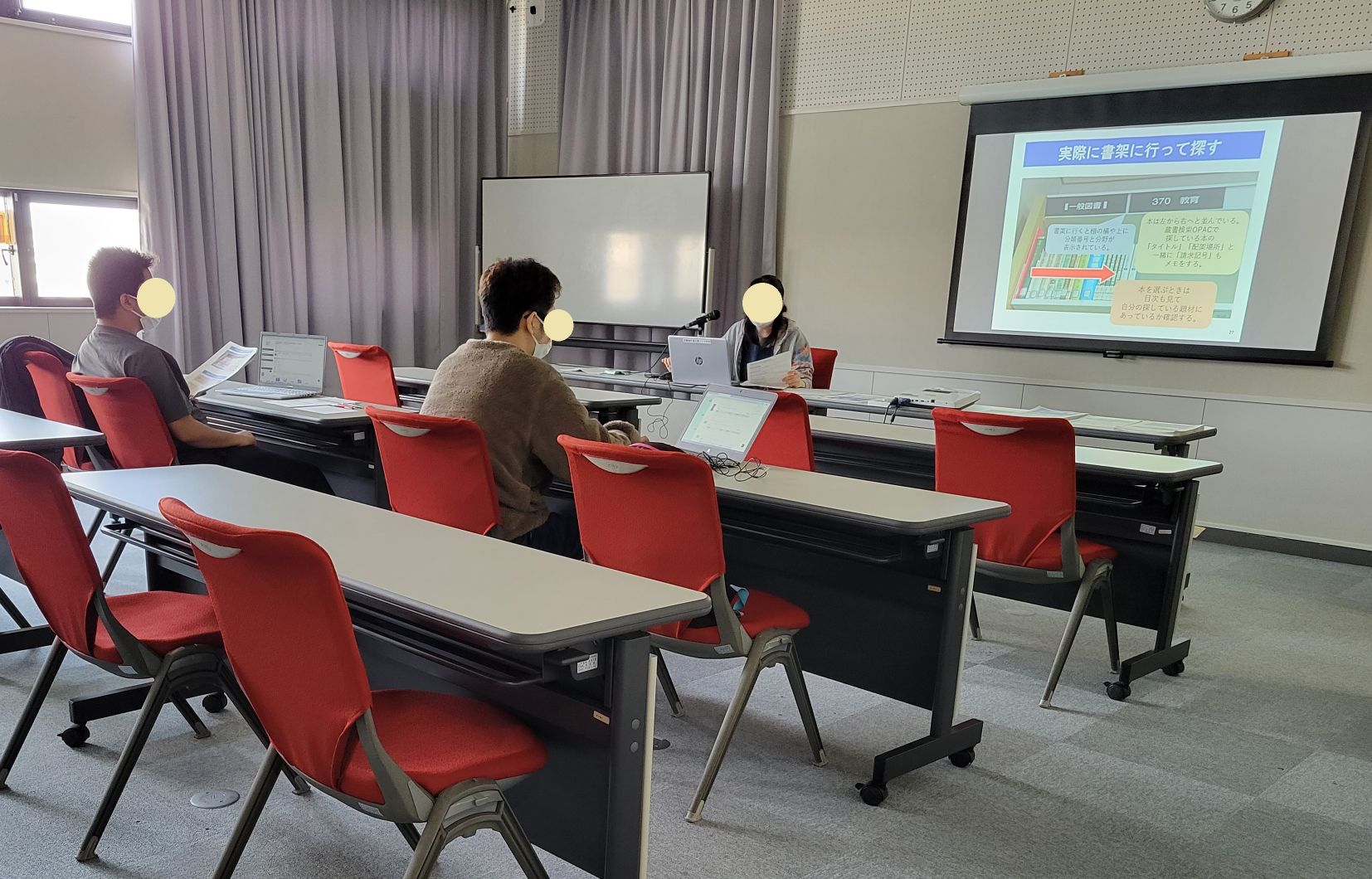 日本文化学科で、図書館司書を目指して頑張っている学生たちも、自身のレポートに役立てることはもちろん、図書館員の仕事を知る機会にもなる、ということでこのガイダンスに積極的に参加してくれています。